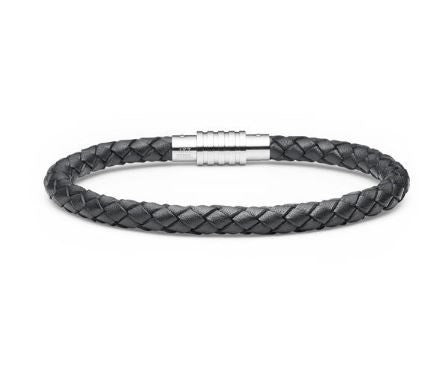 Grey Leather Bracelet with Steel Clasp Small Size measuring 7.5 inches (19cm).Inner clasp is magnetic for a strong hold while you spin the clasp closed for a tight and secure hold.