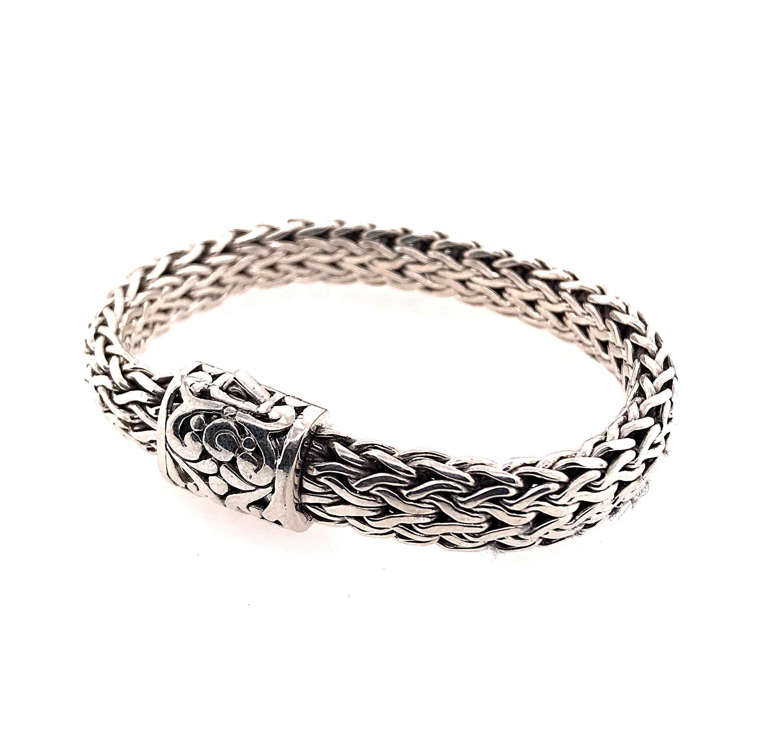 Handwoven, Medium-Weight Sterling Silver Bracelet with Byzantine Filigree Cut Out Design, Measuring 7 inches. 10mm Wide.Local Lake Tahoe Designer