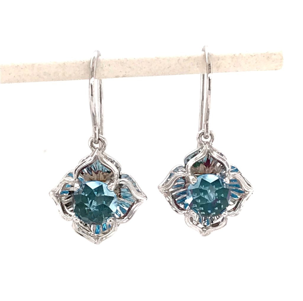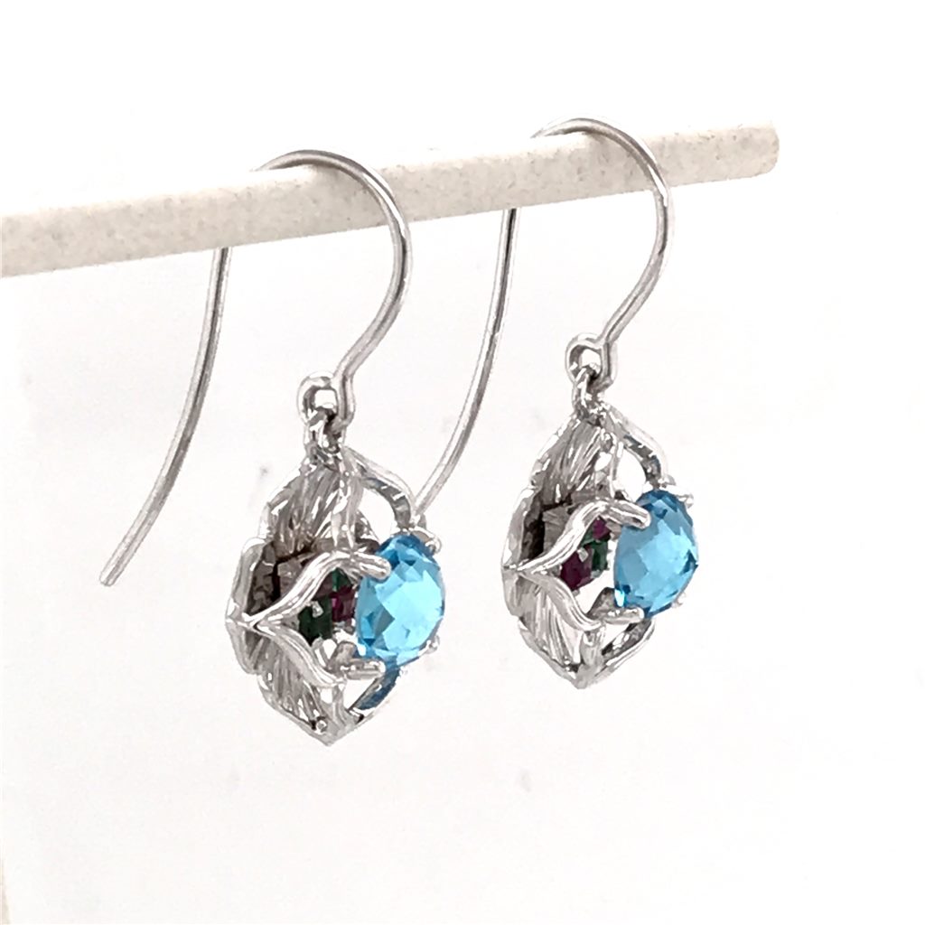 KALEIDOSCOPE 14K White Gold Earrings w/Topaz, Emerald & Rubies