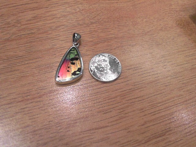 Lady's Small Sterling Silver Pendant with Butterfly Wings Sunset Moth