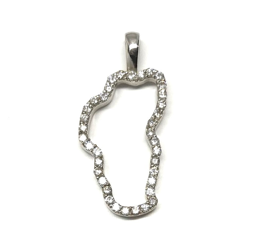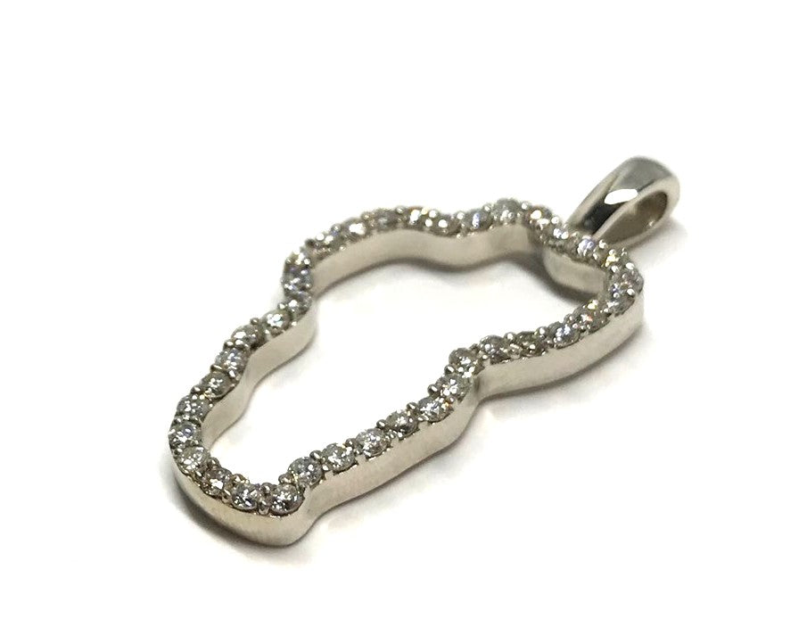 Large 14 Karat White Gold Diamond Lake Tahoe Outline Pendant with 37 R