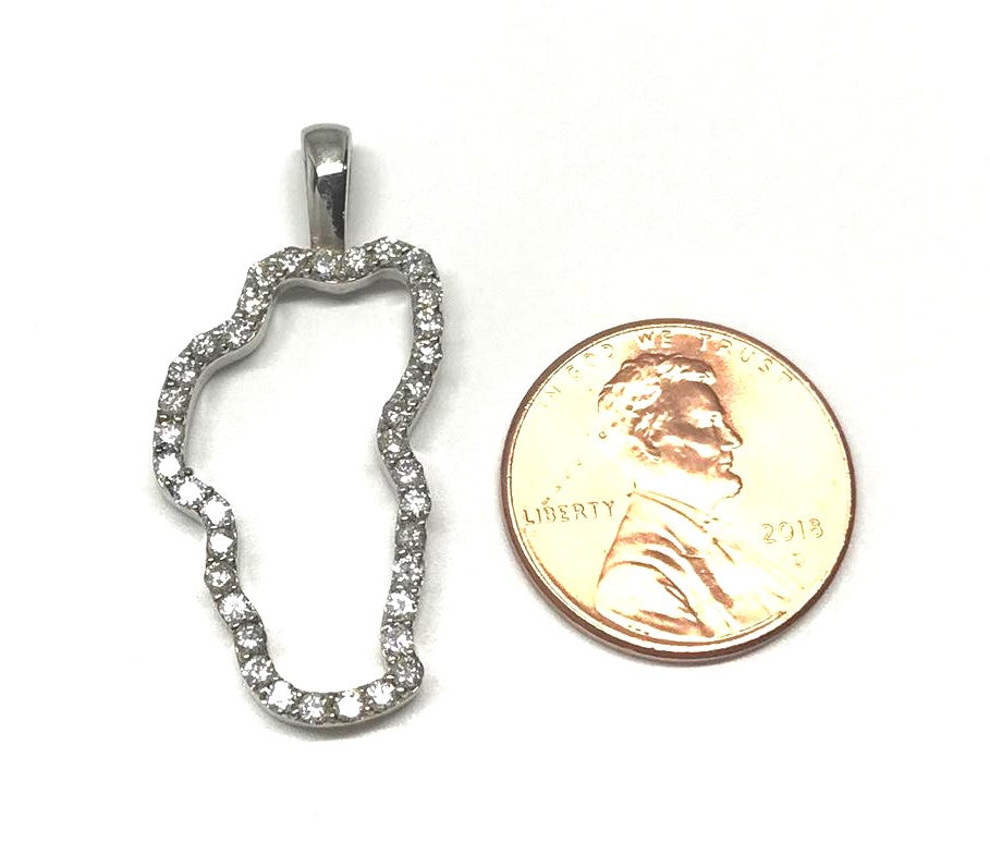Large 14 Karat White Gold Diamond Lake Tahoe Outline Pendant with 37 Round Diamonds at 0.75 Carats Total Weight of G Si1 Quality Diamonds.