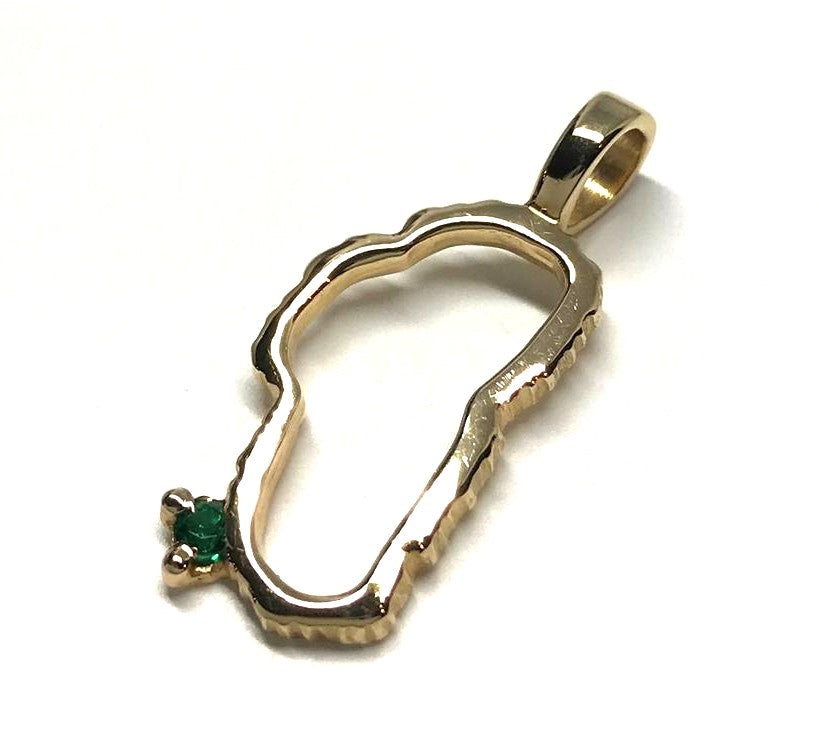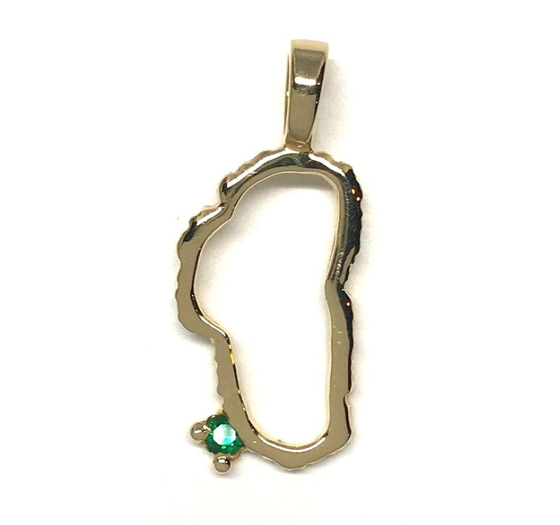 Large 14 Karat Yellow Gold Lake Tahoe Outline Pendant with Emerald