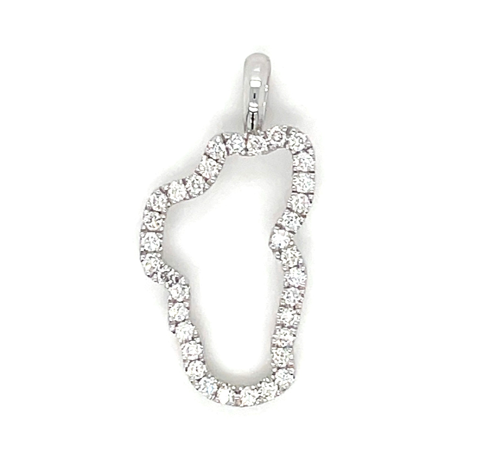 Large 14 Karat White Gold Lake Tahoe Pendant with 34 Round Diamonds at 0.34 Carats Total Weight of G SI1 quality. Measures 1/2 Inch by 1 inch.Chain is sold separately. Comes on a metal alloy DISPLAY chain.