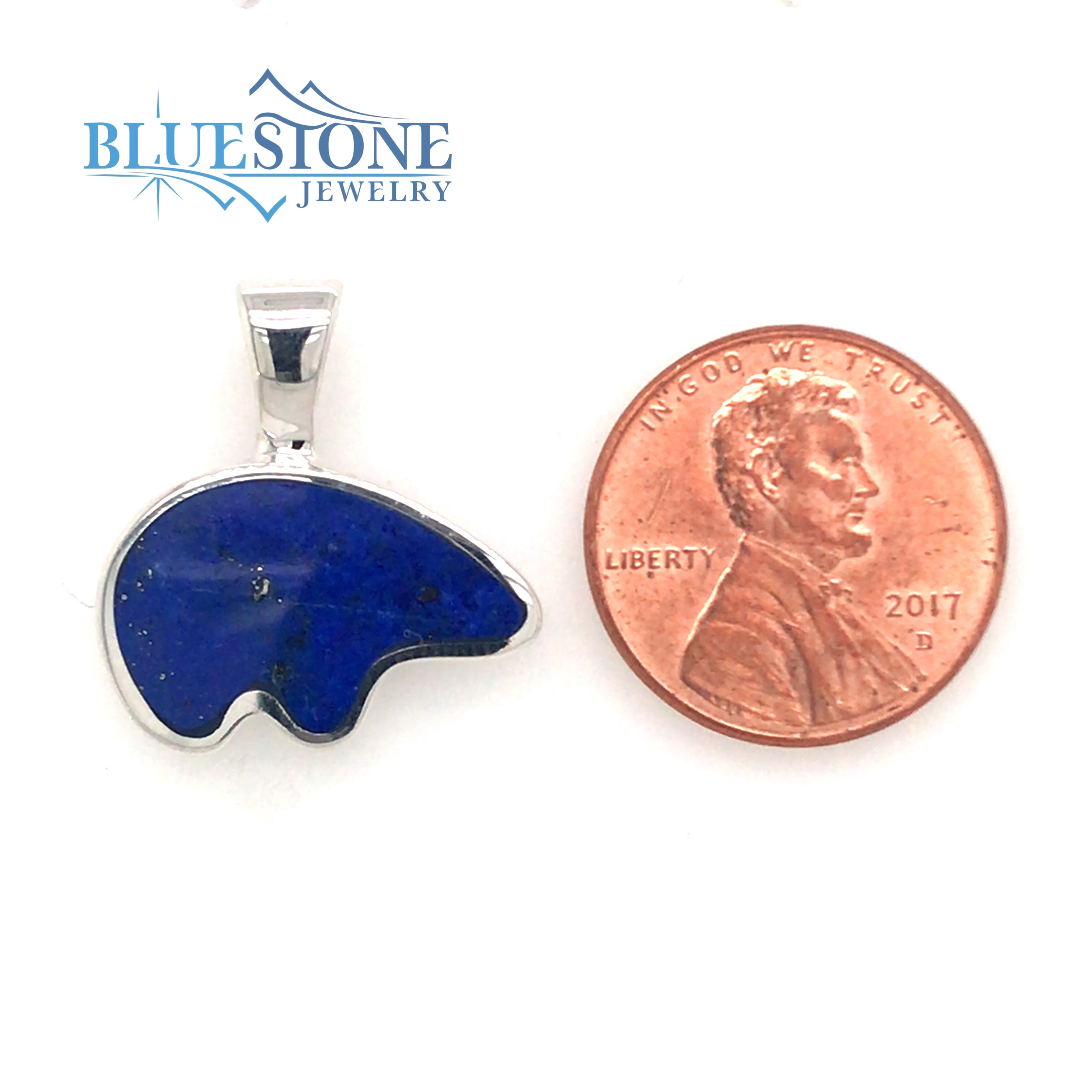Large Sterling Silver California Black Bear Pendant with Natural Lapis