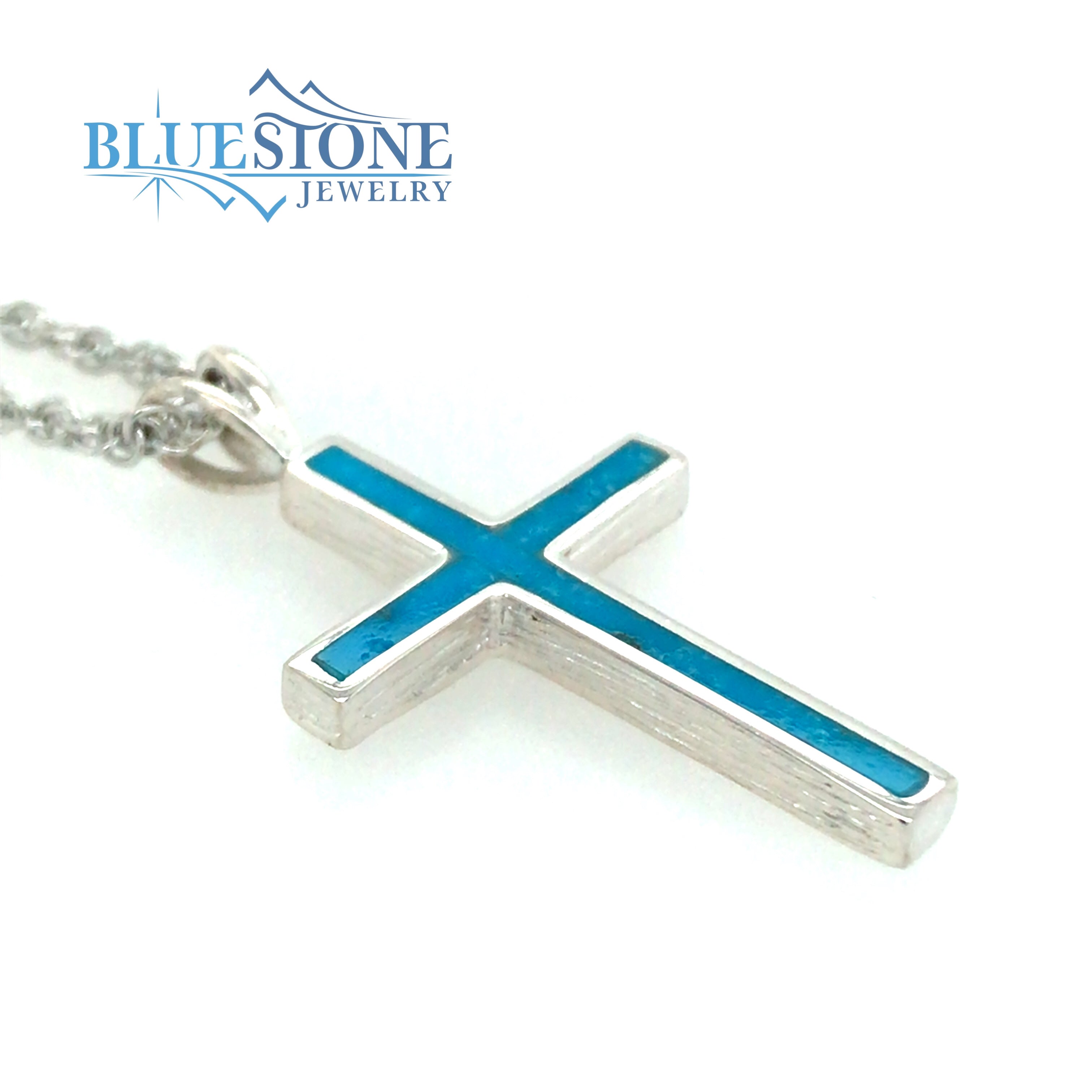 Large Sterling Silver Cross Pendant with Turquoise inlay.Measures 34mm x 18.3mm with the bail or 1.33 x 0.72 inch