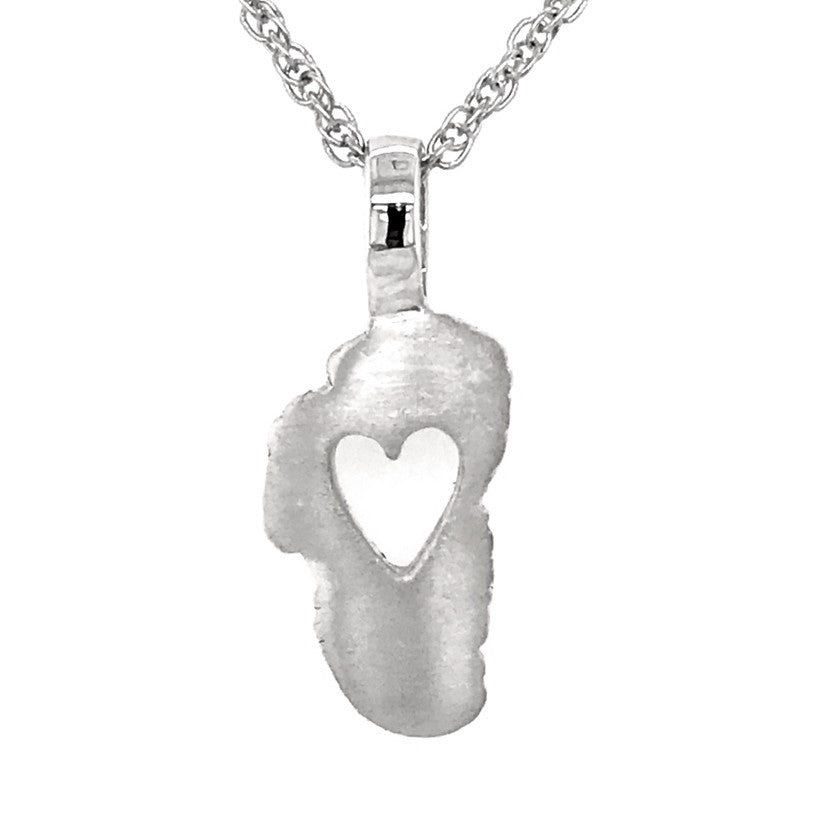 Large Sterling Silver "In Love with Lake Tahoe" Pendant with a Satin Finish. Heart cutout in the middle of Lake Tahoe.Pendant measures 1 1/4 in top to bottom and 5/8 inch wide.Comes on an 18' alloy display chain. It is highly recommended to switch pendant to a Sterling Silver chain before wearing.