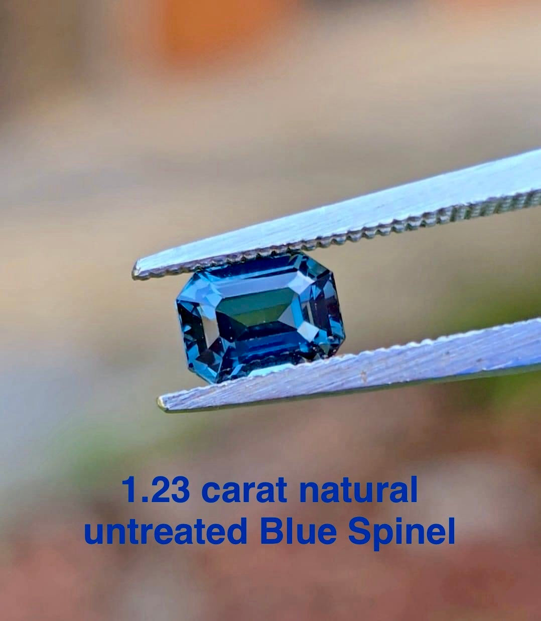 One Loose 6.5 x 4.8 x 3.9mm 1.23 Carat Natural Untreated Precision Emerald Cut Blue Sri Lanka Spinel Gemstone. It is very Rare to find an untreated blue stone.Available for individual purchase or to be set into a custom setting.