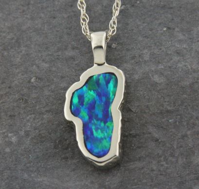Medium 14 Karat White Gold Lake Tahoe Pendant with Lab-Grown Opal.