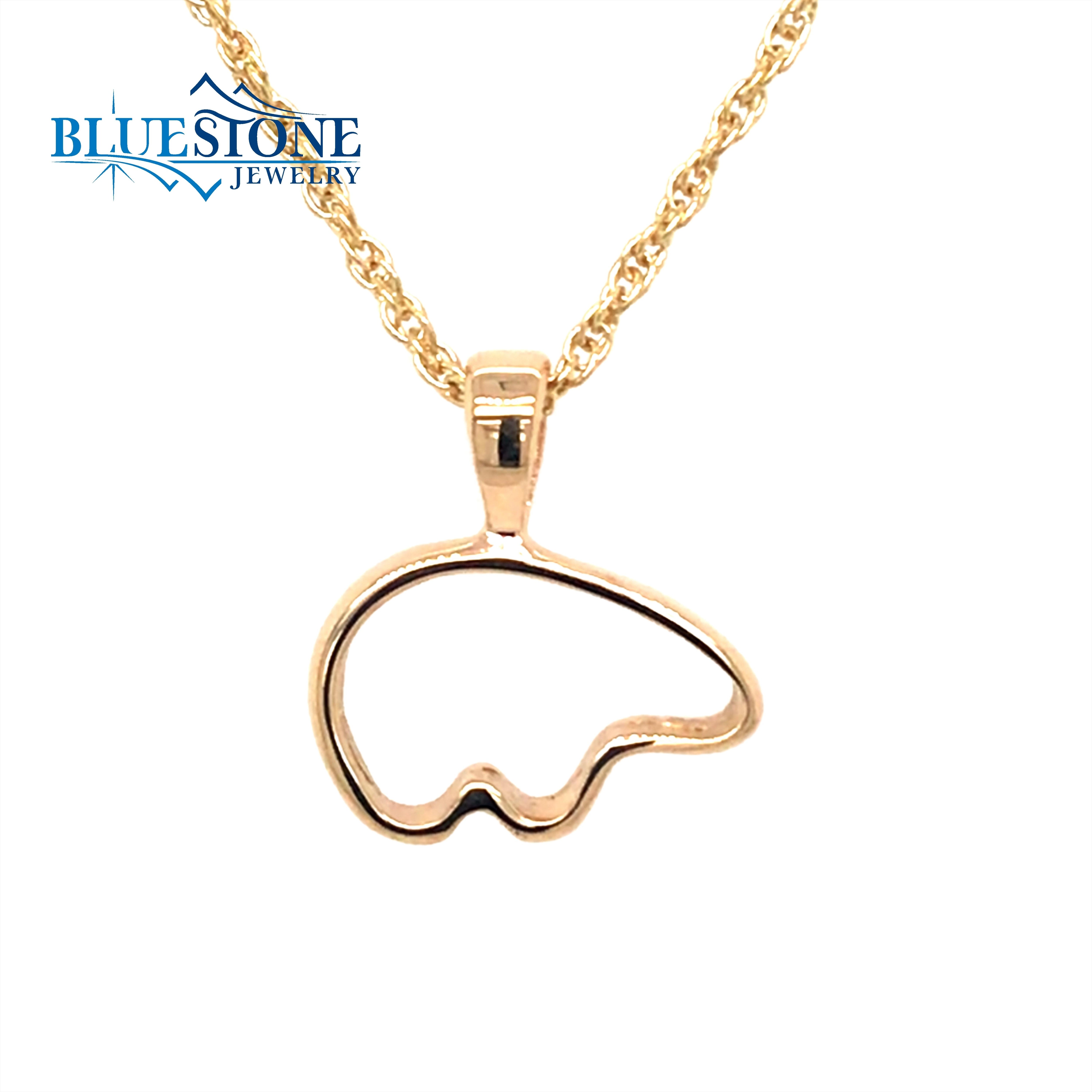 Medium 14 Karat Yellow Gold Bear Outline Pendant. Measures Approximately 5/8" x 5/8".Comes on base metal display chain. It is highly recommended to switch to a different chain for wearing.