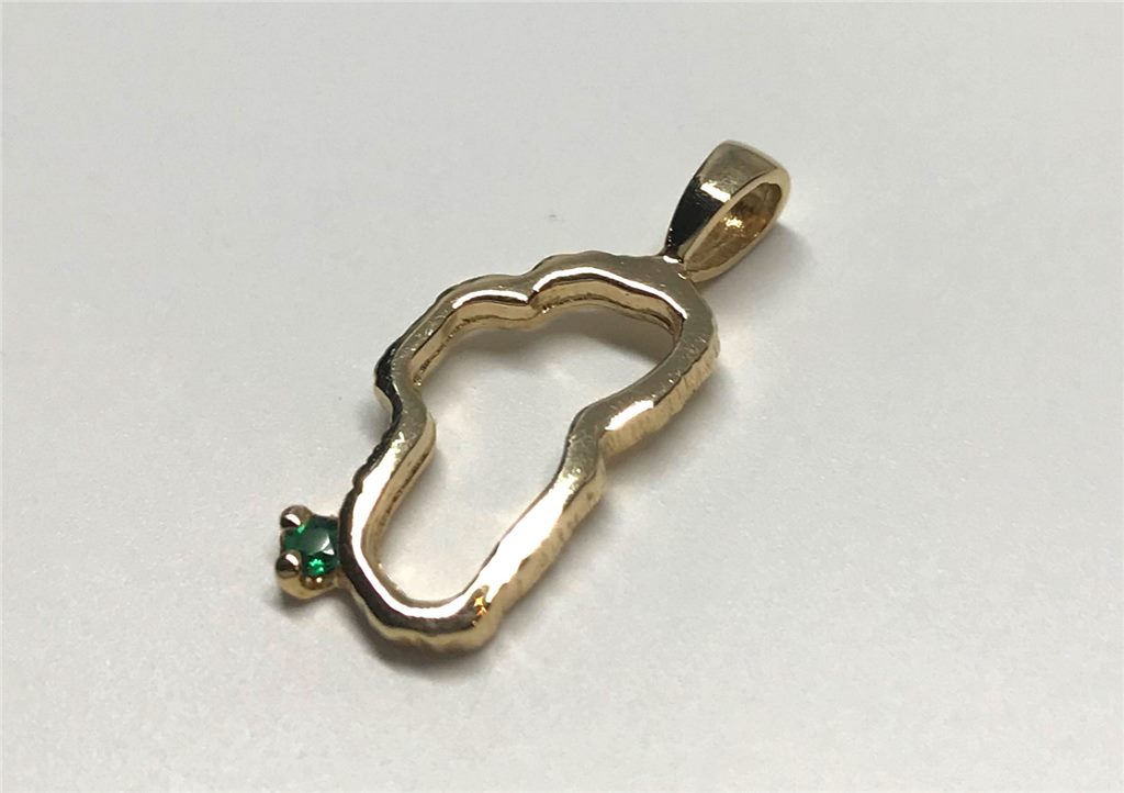 Medium 14 Karat Yellow Gold Outline of Lake Tahoe Pendant with Natural Emerald.MEASURES 5/8th OF AN INCH TALLComes on 18"Yellow Plated Alloy Display Chain (Recommended to switch onto a different chain)