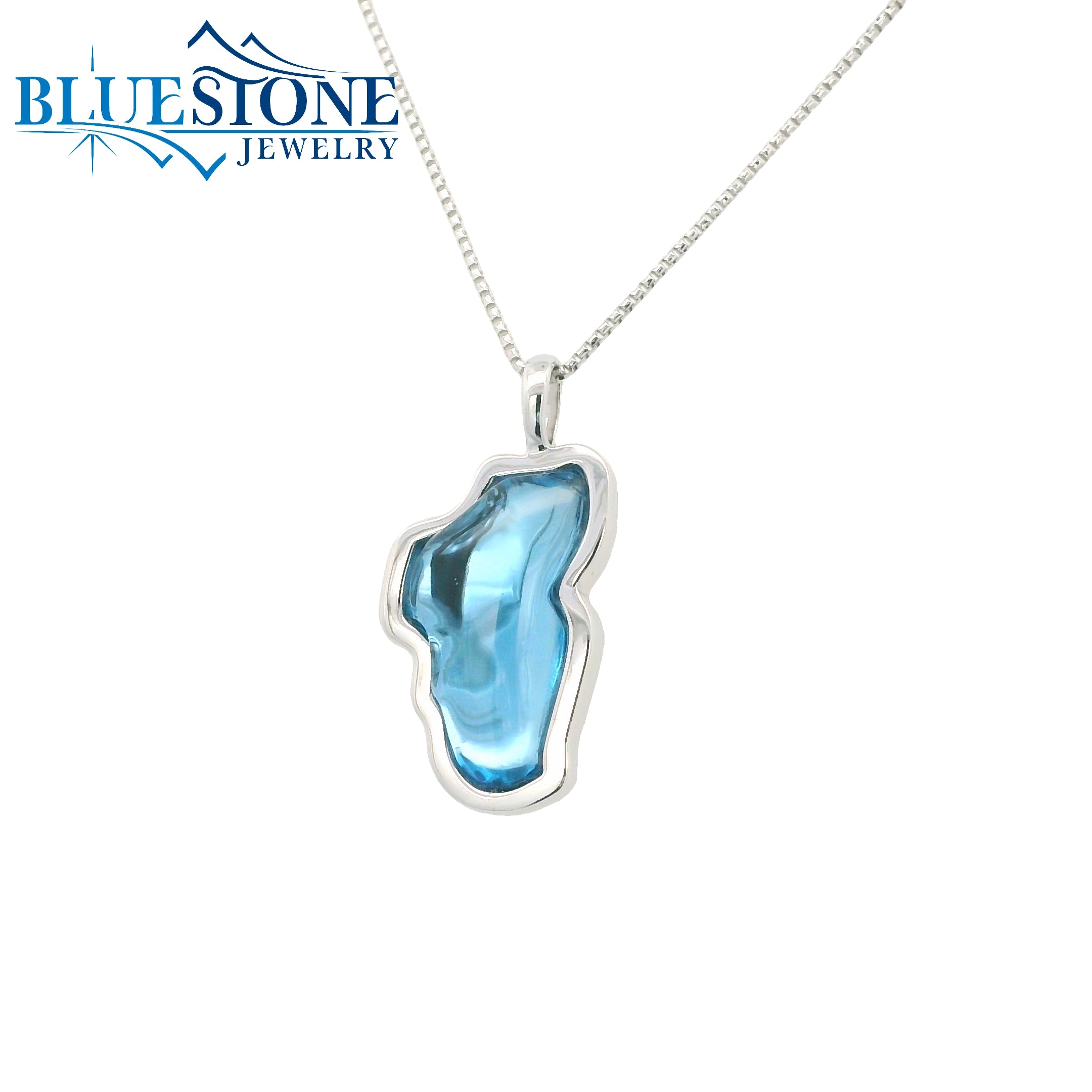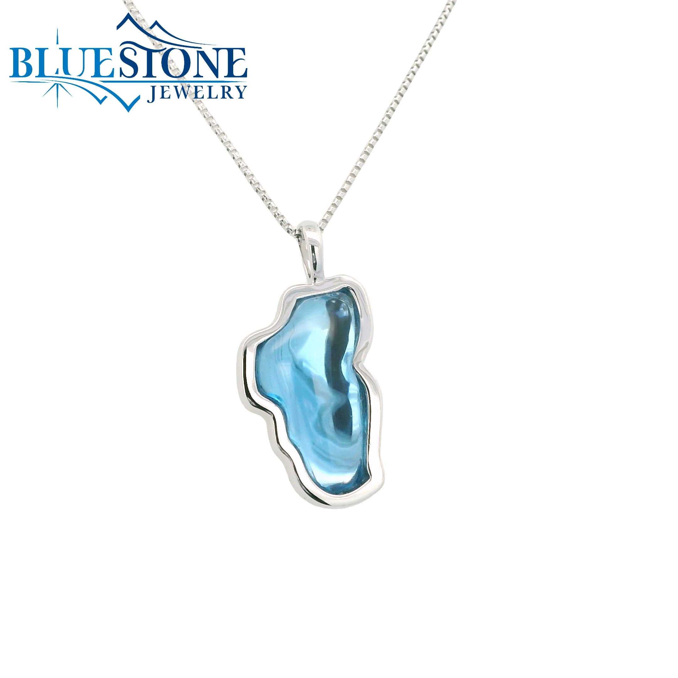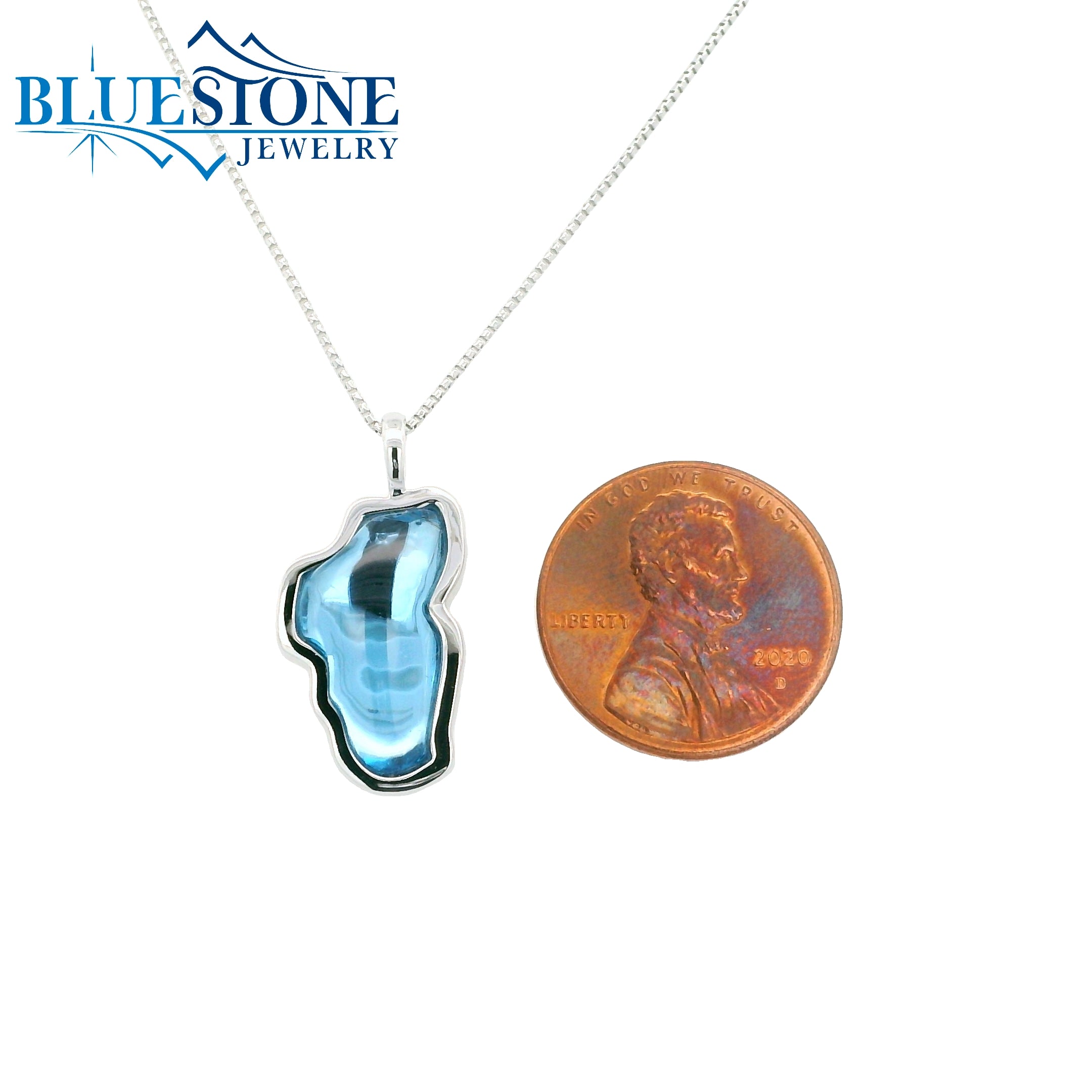 Large Solid 14KWG Hyrdo Blue Topaz Lake Tahoe Pendant