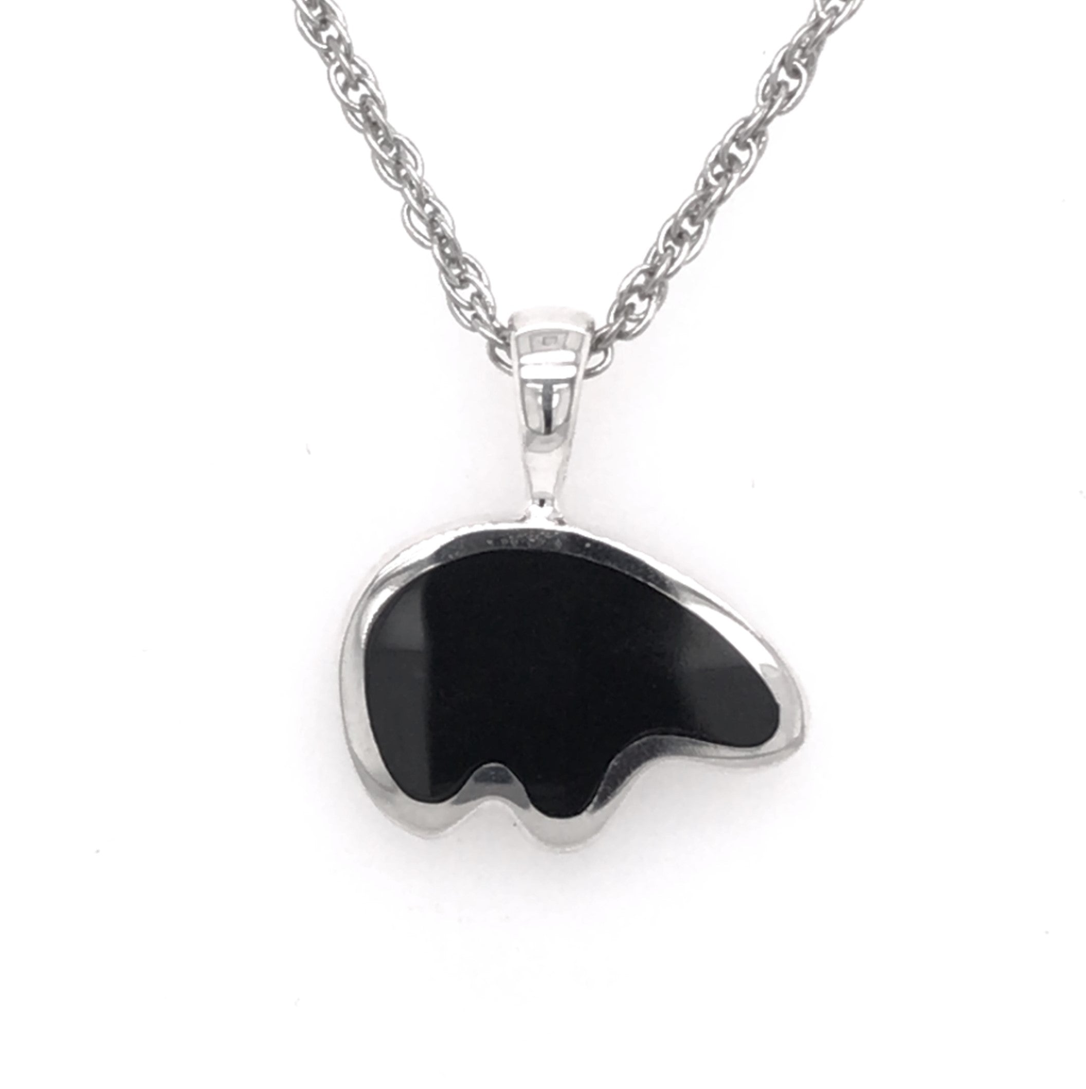 Medium Sterling Silver Bear Pendant with Black Onyx Inlay. Bear Measur