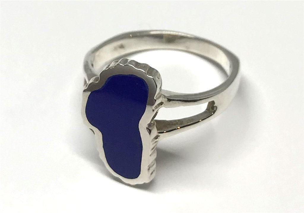 Medium Sterling Silver Fashion Ring with a Lake Tahoe Shaped Lapis. Ring Size 6.Can be special ordered or re-sized per request. Please contact for details.