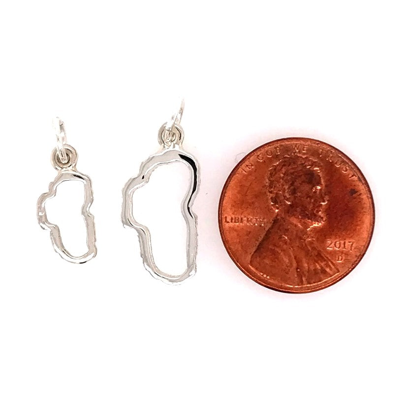 Medium Sterling Silver Outline of Lake Tahoe Charm on Jump Ring. Measures approximately 5/8 of an inch tall and 5/16 of an inch wide. PLEASE NOTE: This charm comes on an openable jump ring meant to be placed onto a charm bracelet. After purchasing this charm we highly recommend soldering the openable jump ring to keep the charm secure, and prevent loss.If you plan on wearing your Lake Tahoe as a necklace we suggest selecting a PENDANT instead of a charm.