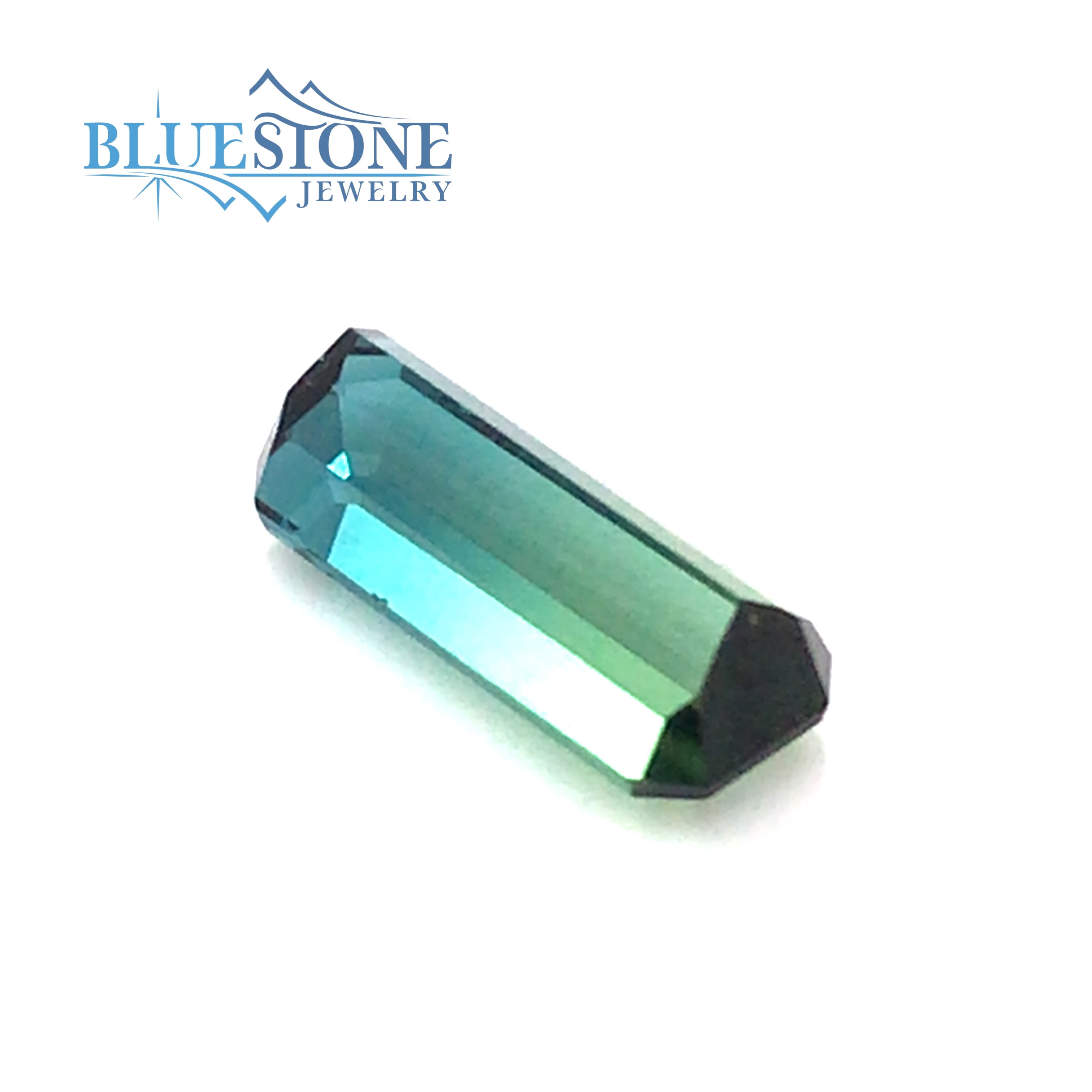 One Loose 12.02 x 4.9 x 4.09mm 2.30 Carat Emerald Cut Genuine Bi-Colored Blue/Green Tourmaline Gemstone. Sold individually. Can be custom set into a jewelry setting.