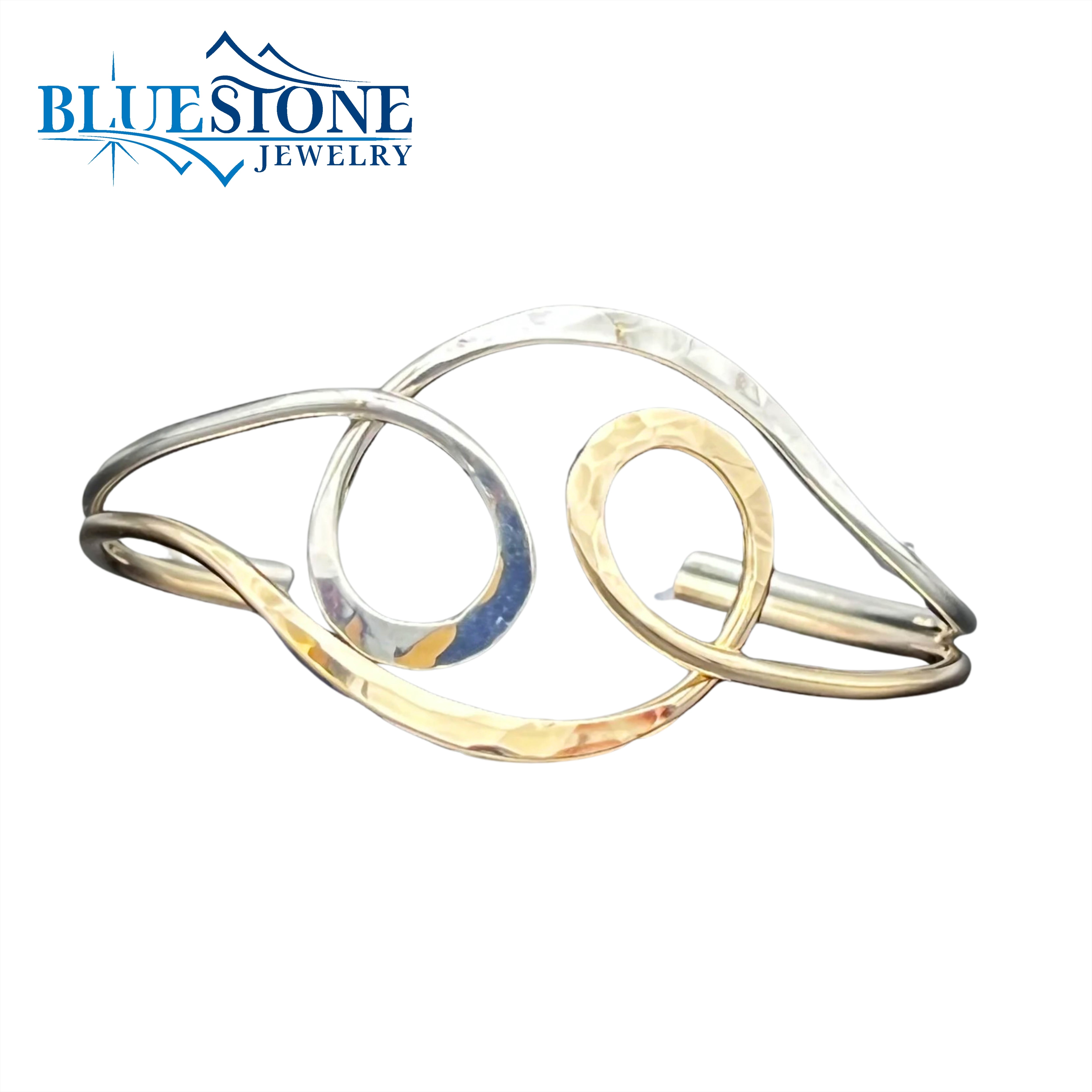 Hand Hammered Sterling Silver and 14 Karat Yellow Gold Fill Cuff Bracelet. Nickel Free. Measures 2.5" Wide.