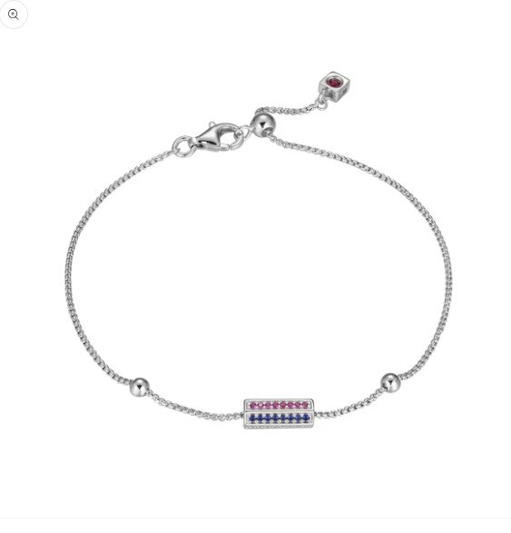 Sterling Silver Rhodium Plated Bracelet With Created White Sapphires, Created Blue Sapphires And Created Ruby Gemstones. Also Includes One Hidden Round Created Ruby Gemstone Which Represents Inner Beauty, Inner Peace & Inner Strength.Length is 6.75" Plus An Additional 1" Extender, Total Length Is 7.75".