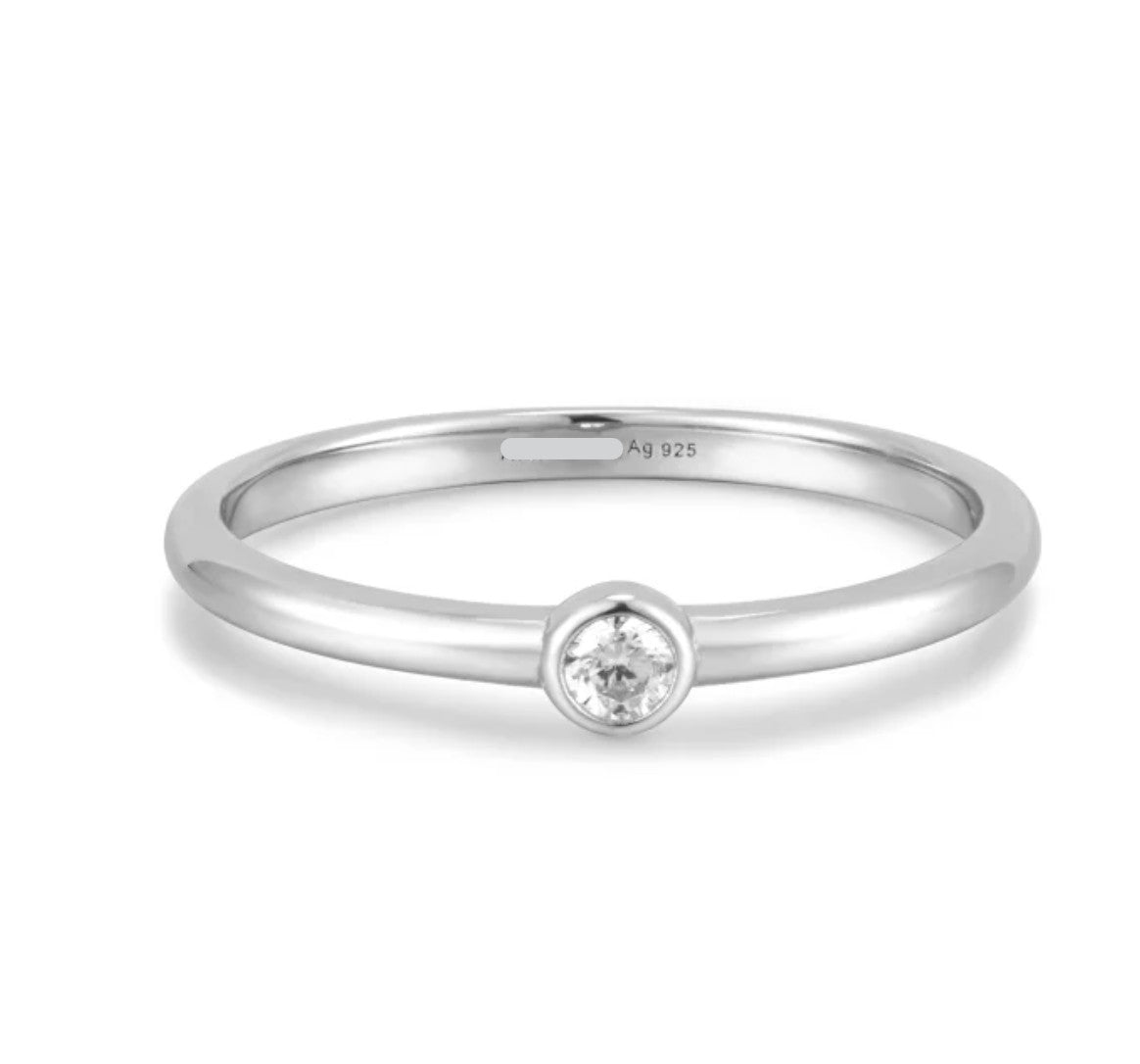 Silver Cubic Zirconia Solitaire Ring- Sz. 7.5