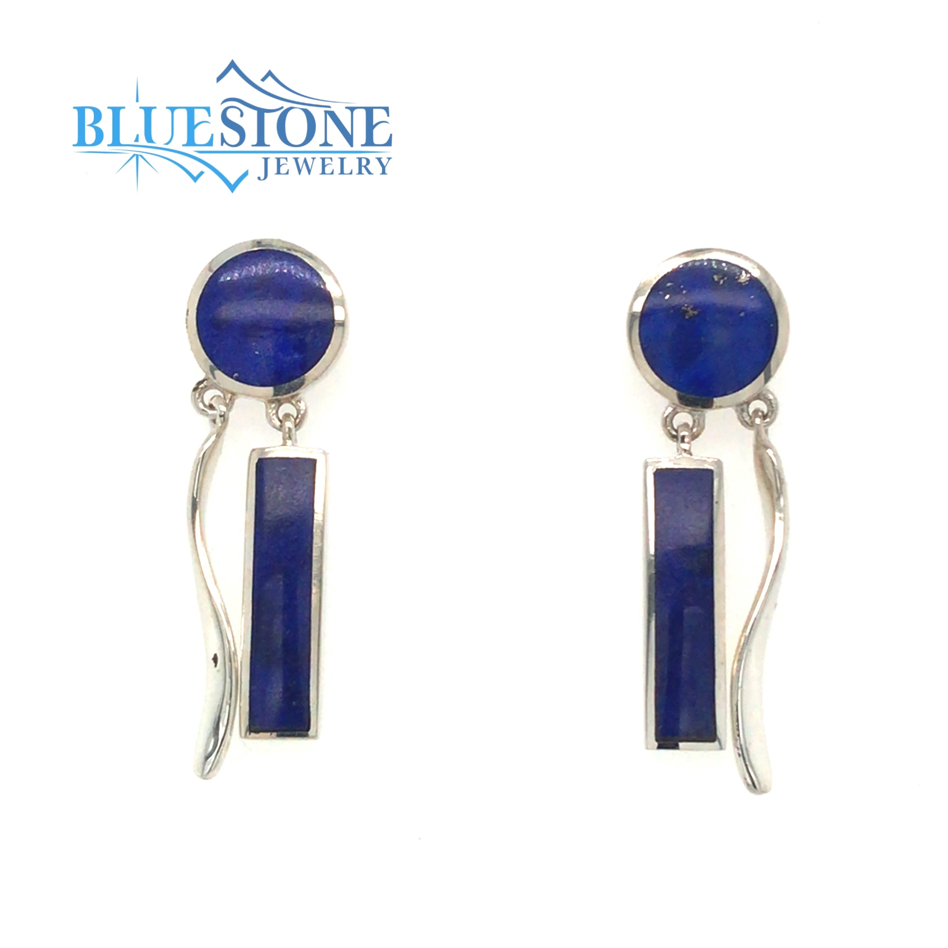 Sterling Silver Rhodium Plated Stud Earrings with Four Lapis Lazuli. Measure 1 2/8 Inches Long.