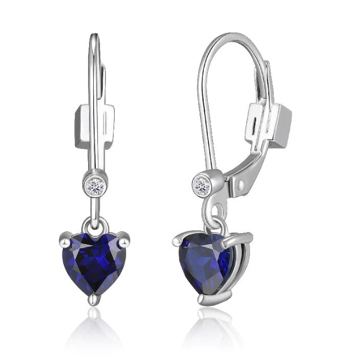 Sterling Silver Rhodium Plated Lever Back Earrings with Two 5mm Heart Shaped Lab Created Sapphires, Two Round Lab Grown Diamond at 0.02 Total Carat Weight of F/C, H-I/I1 Quality and Two Round Hidden Lab Created Ruby which represents inner beauty, inner peace & inner strength,
