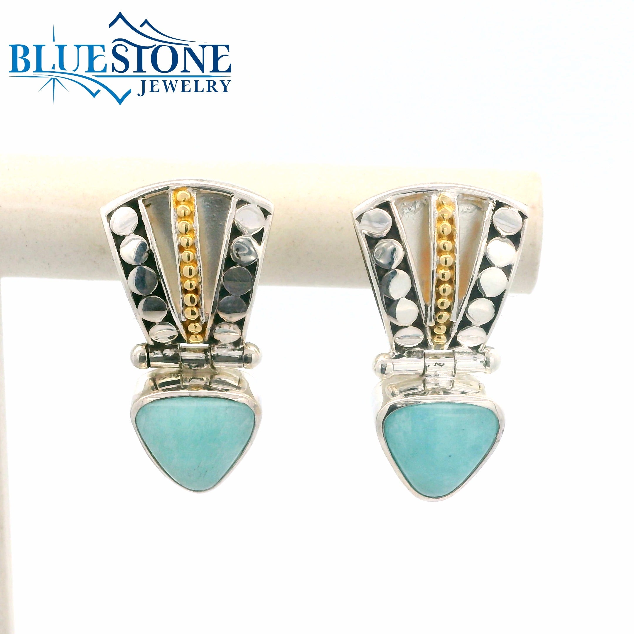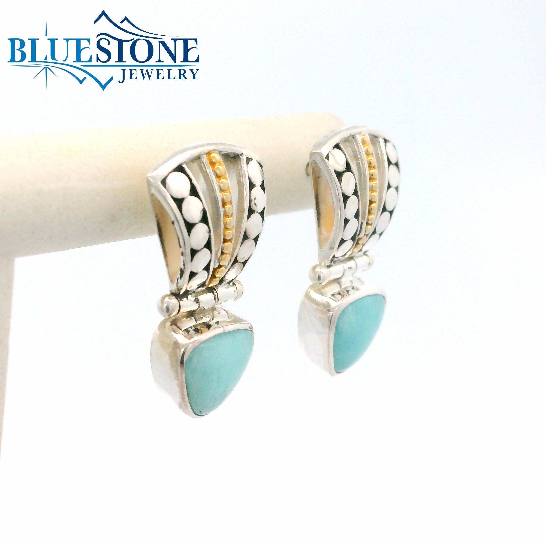Sterling Silver and 22 Karat Yellow Gold Vermeil Wire Earrings with Two 8mm Trillian Cut Amazonites. Measure Approximately 7/8" Long. Local Lake Tahoe Artist Michou.