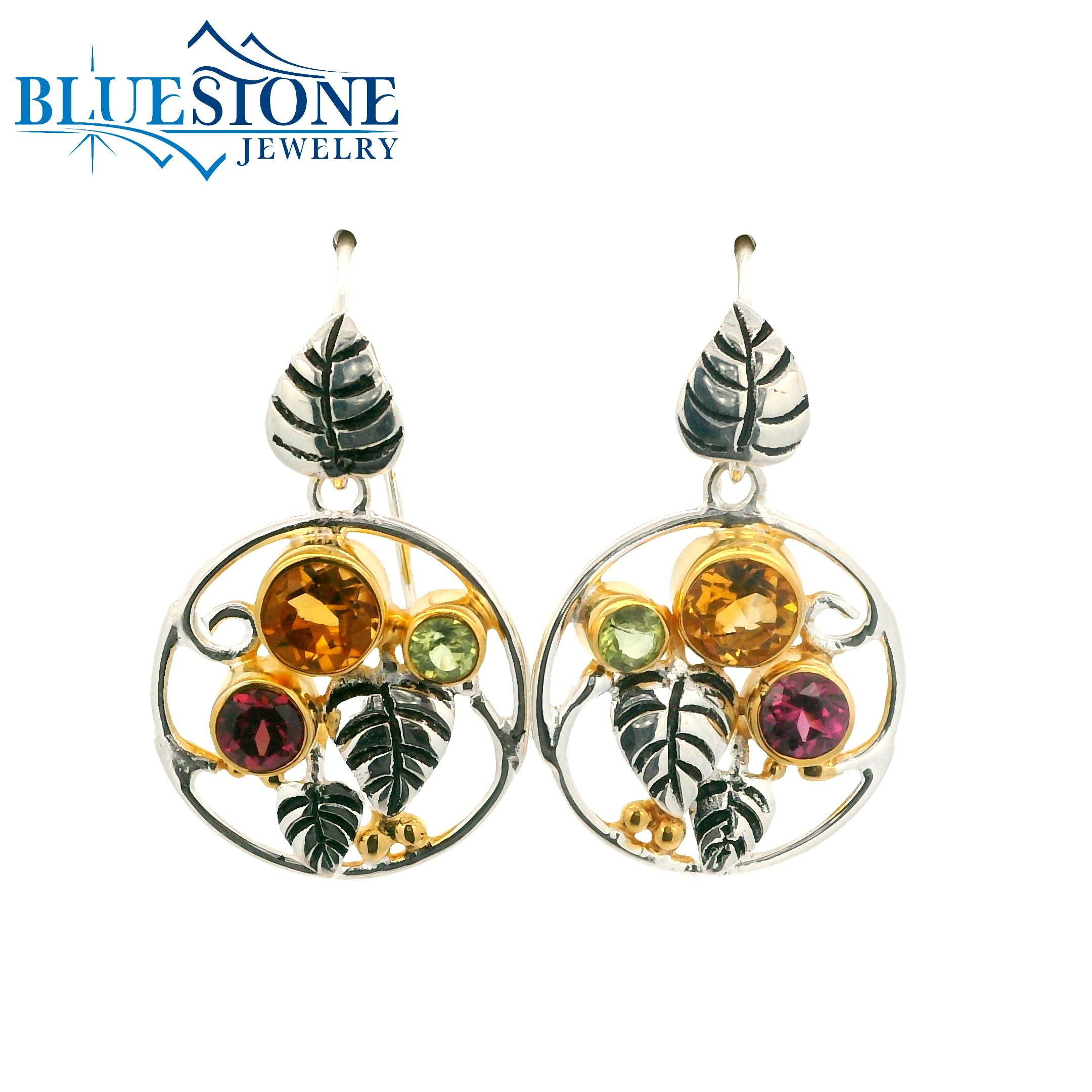 Silver & Gold Earrings with Citrines, Garnets & Peridot