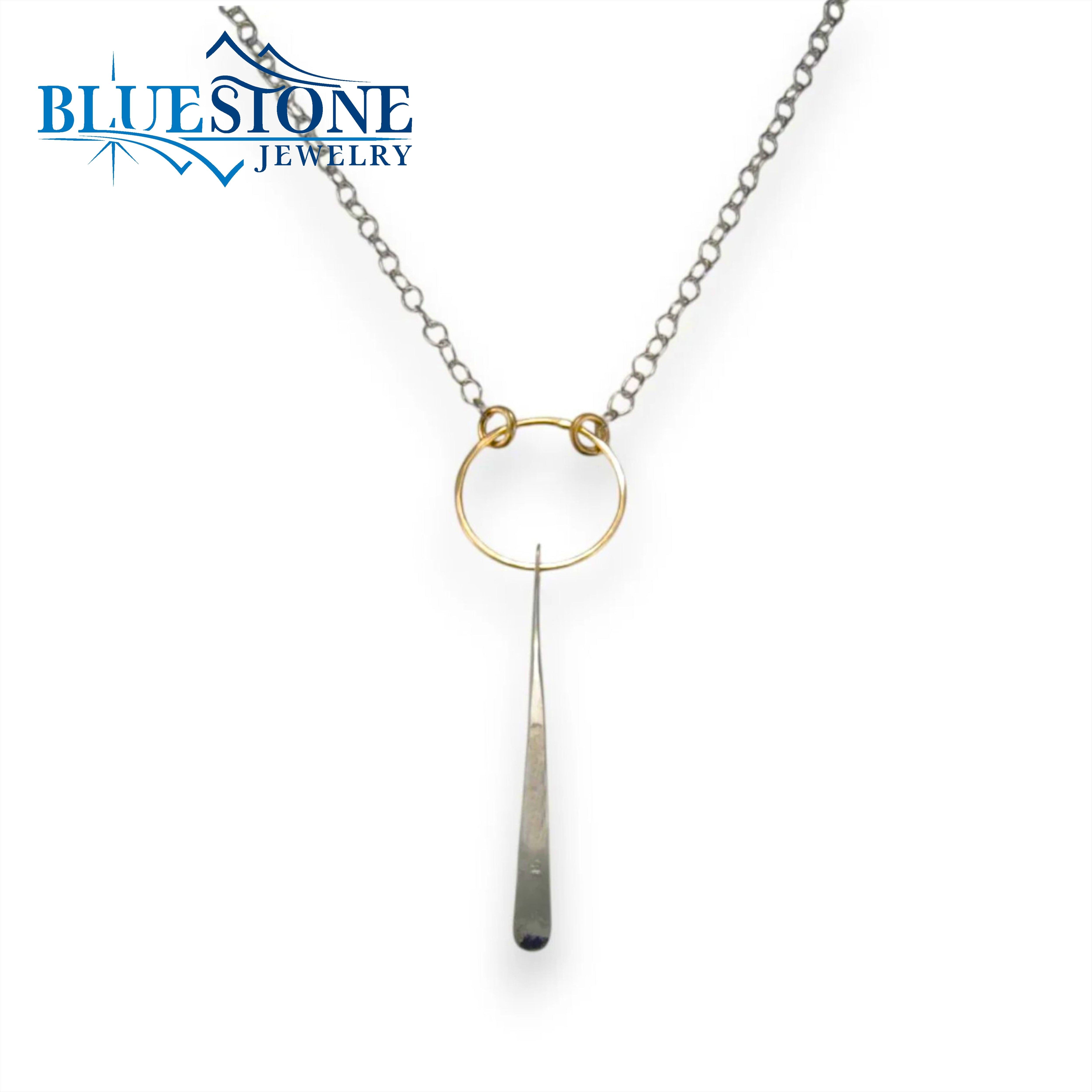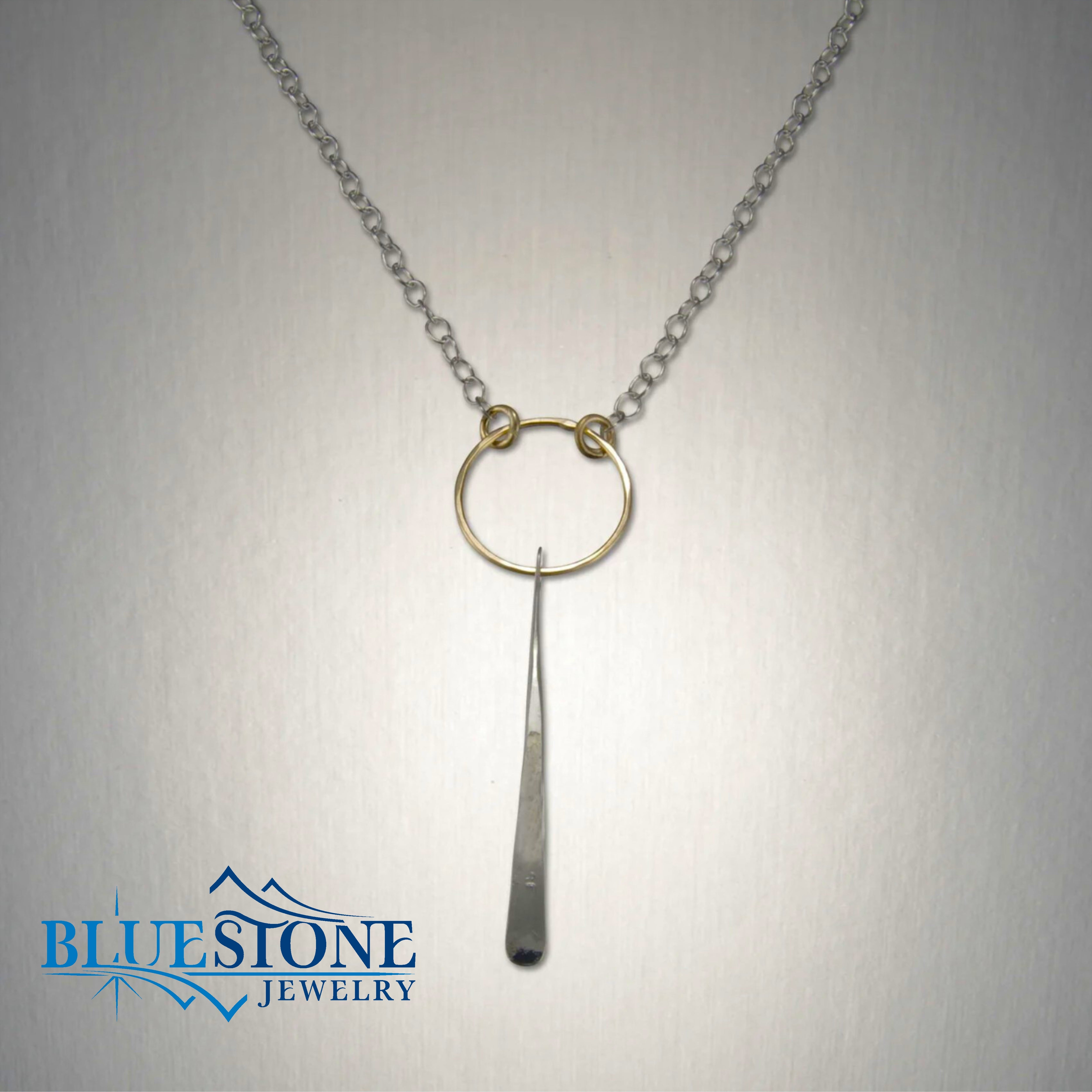 Hand Hammered Sterling Silver & 14 Karat Yellow Gold Fill Pendant Fixed onto a, 18" Chain. Nickel Free.