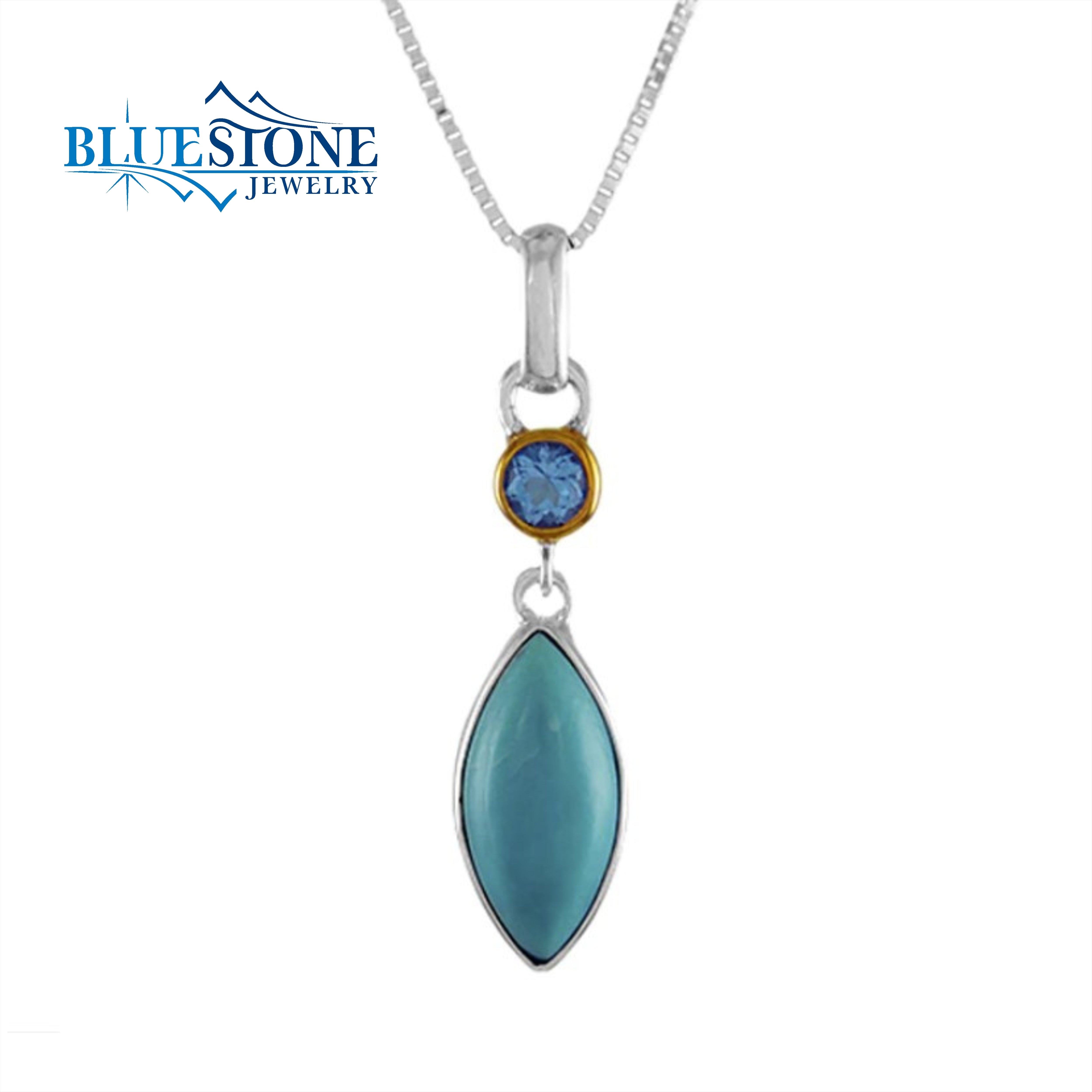 Sterling Silver and 22 Karat Yellow Gold Vermeil Necklace with One Round Topaz and One Maruise Cut Turquoise. Pendant Measures 1.25 Inches Long.By local Lake Tahoe designer Michou!