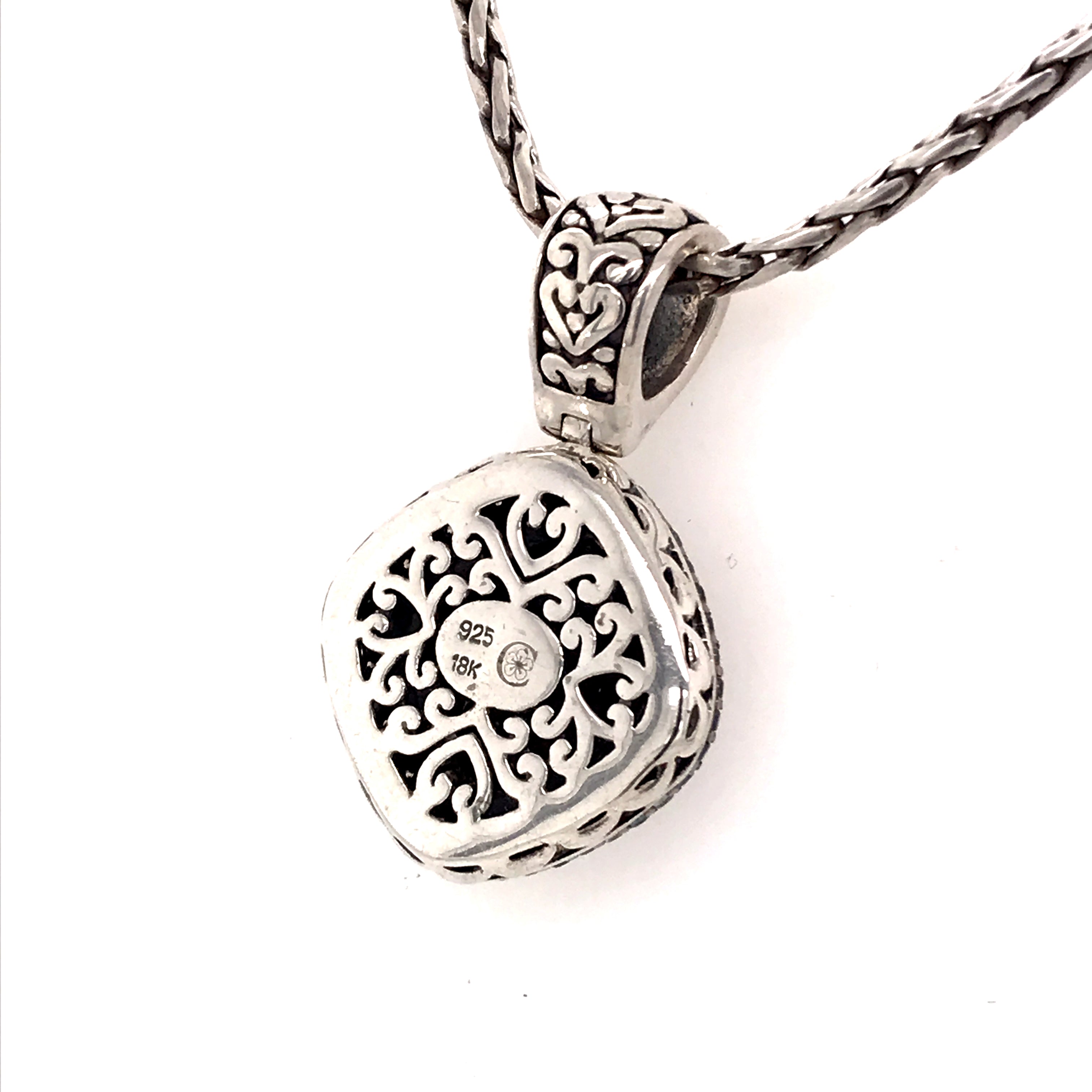 Silver & Gold Pendant with Sapphires and Diamonds on Chain
