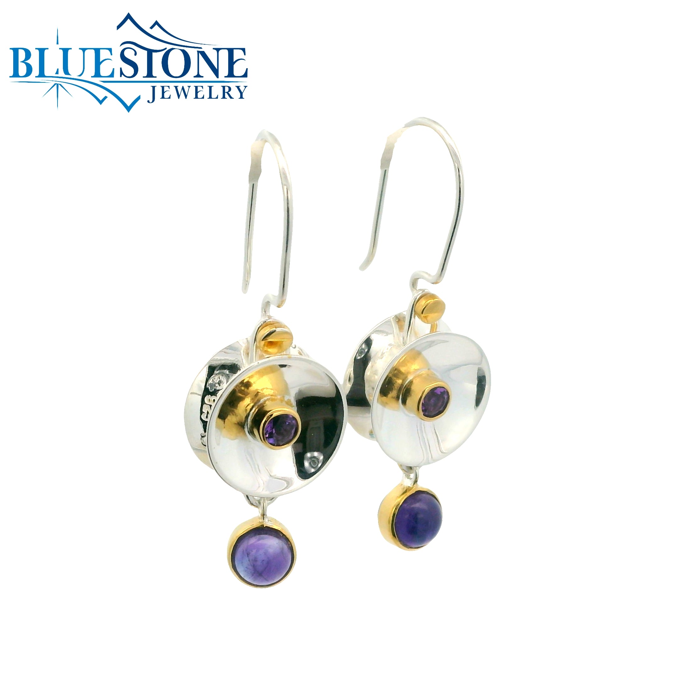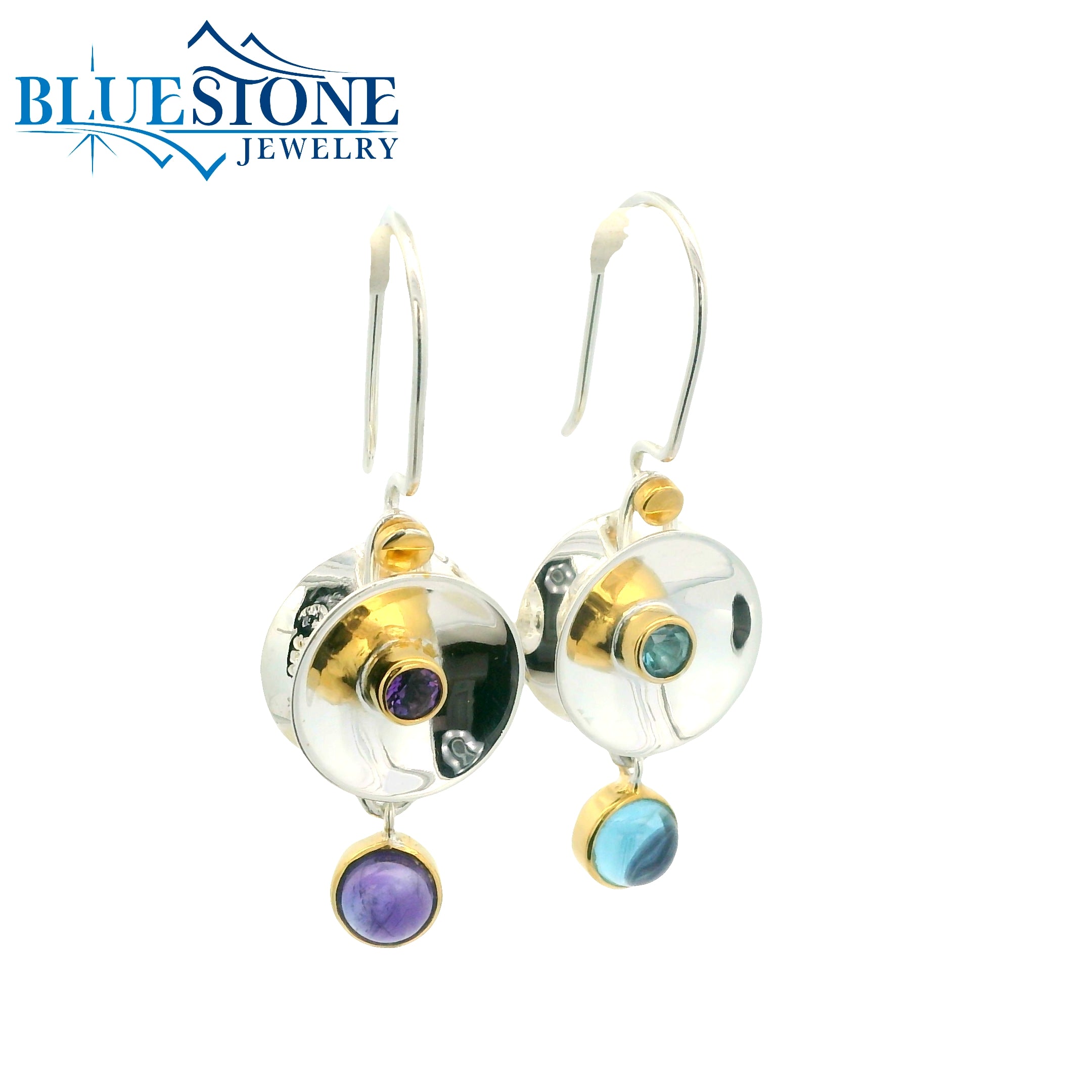 Silver & Gold Reversible Earrings with Amethysts and Topaz