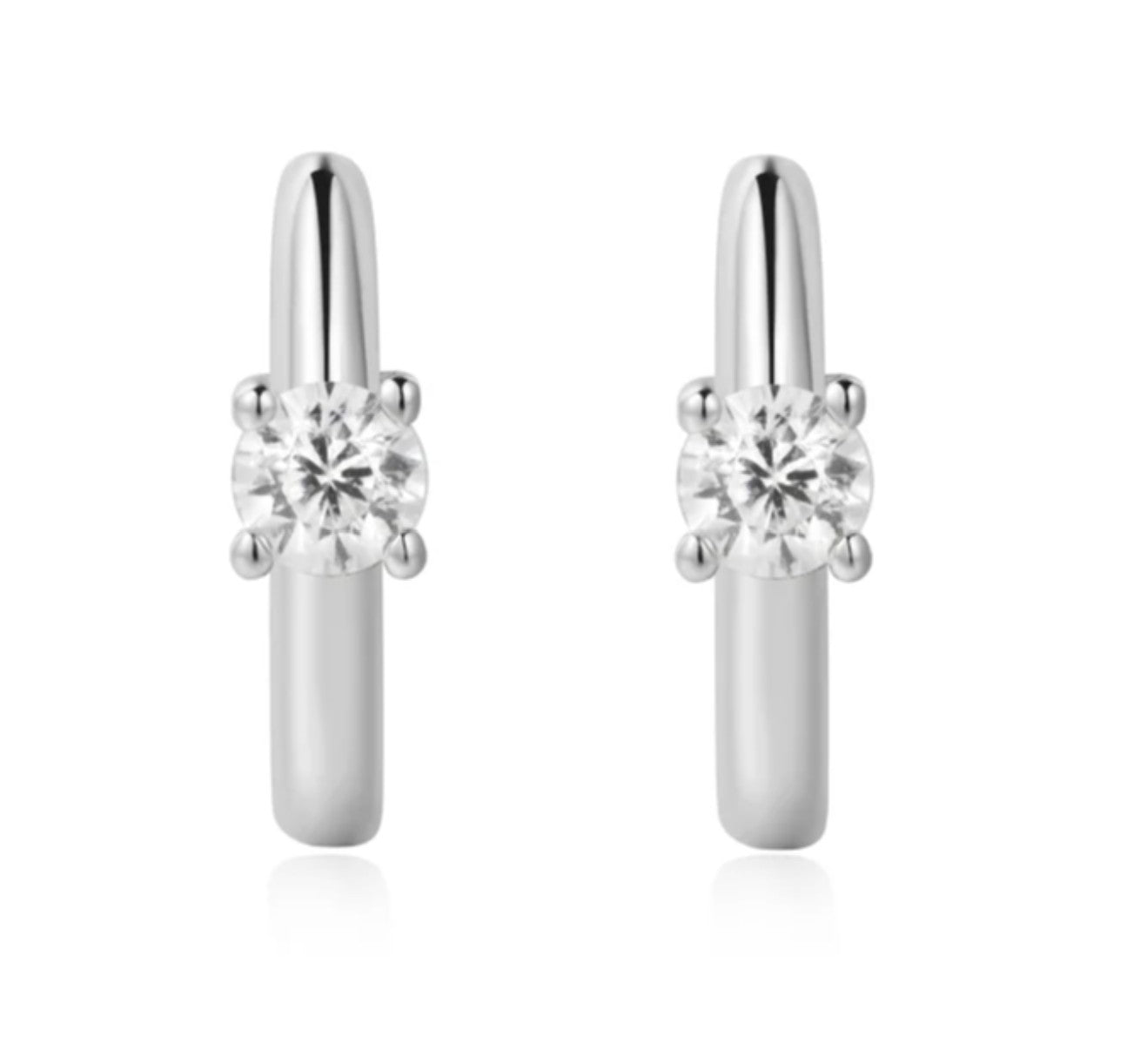 Silver Huggie Hoop Earrings with Cubic Zirconias