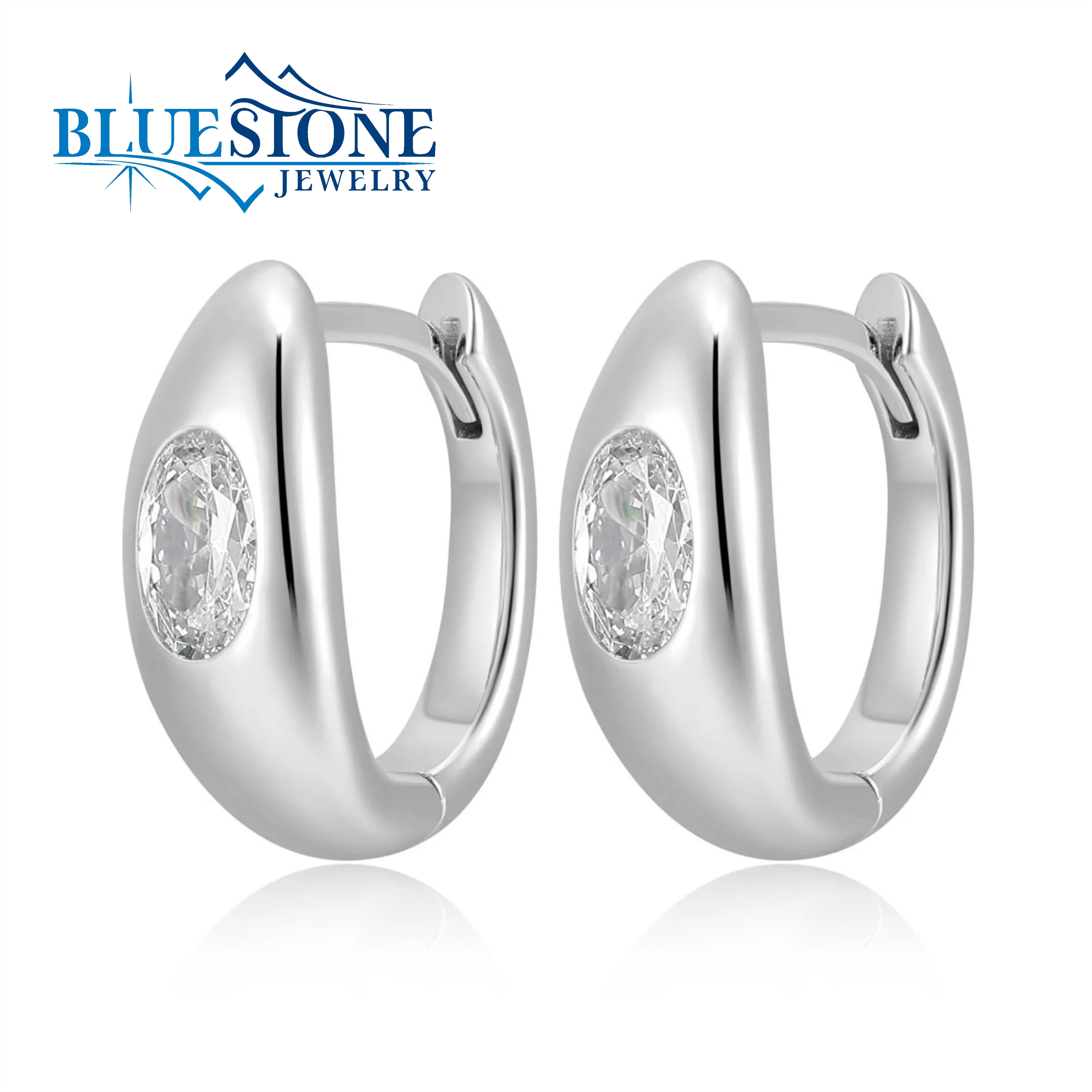 Sterling Silver Huggy Earrings with Two 6mm x 4mm Oval Cut Cubic Zirconia. Measure Approximately 1/4 Wide by 1/2 Inch Long.