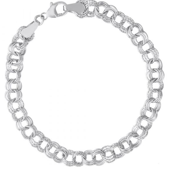 Silver Link Curb Classic Charm Bracelet w/ Lobster Clasp at 8 inches.