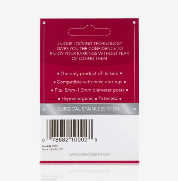 Silver Toned Locking Earring Backs. 2 Pairs per Pack.Made of surgical stainless steel, they’re easy to use. Just slide on posts and they lock automatically; one squeeze and they pull right off. Perfect for all your silver and sterling silver pierced earrings, they fit 99% of all earring posts (0.5 – 1.0mm).