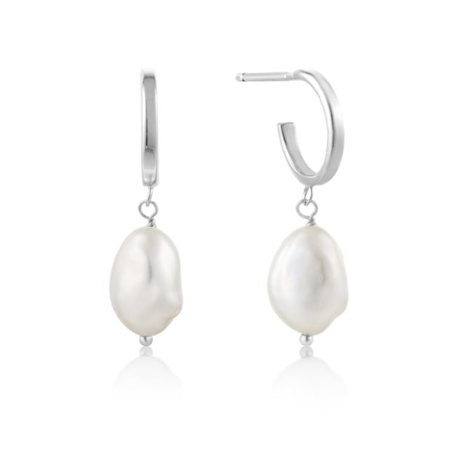 Silver Mini Hoop Earrings w/ Freshwater Pearls