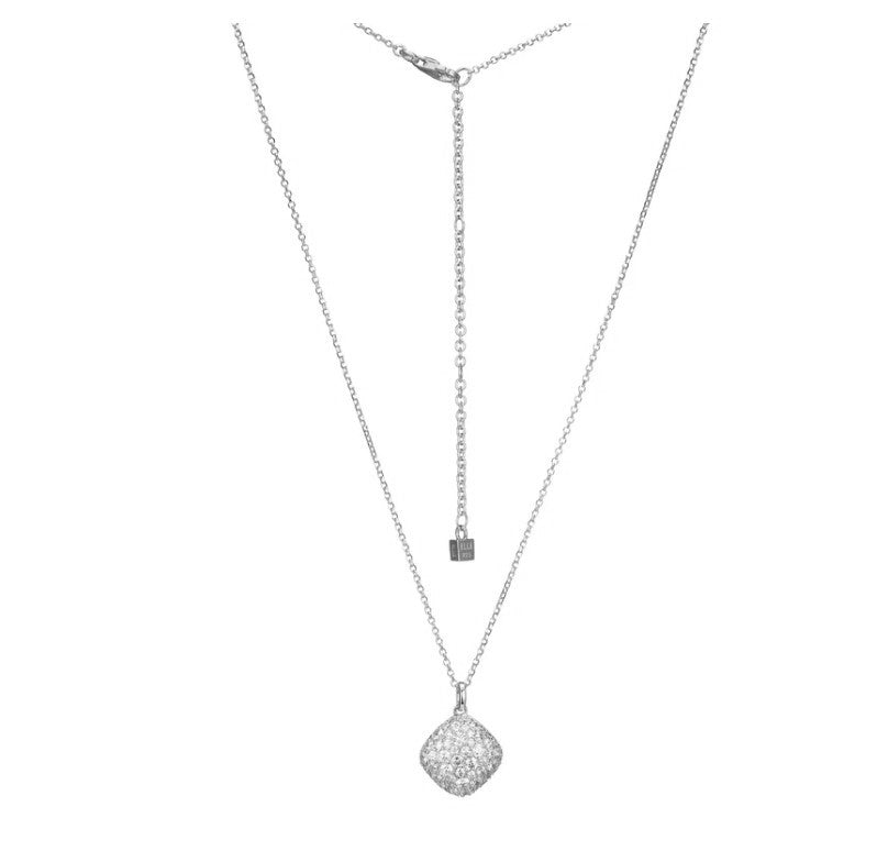 Sterling Silver Rhodium Plated Necklace with Cubic Zirconias and One Hidden Round Created Ruby which represents inner beauty, inner peace & inner strength. Pendant Measures 5/8" Wide. Can be worn between 17" and 20" long.
