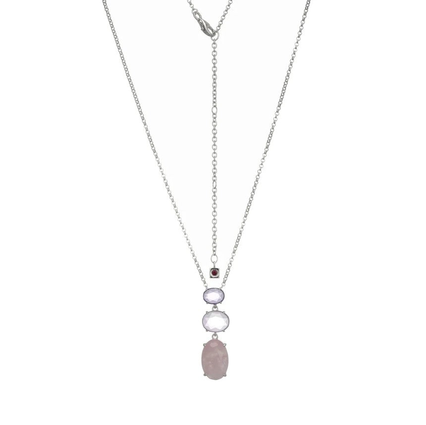 Silver Necklace with Rose Quartz, Pink & African Amethyst Gemstones-20"