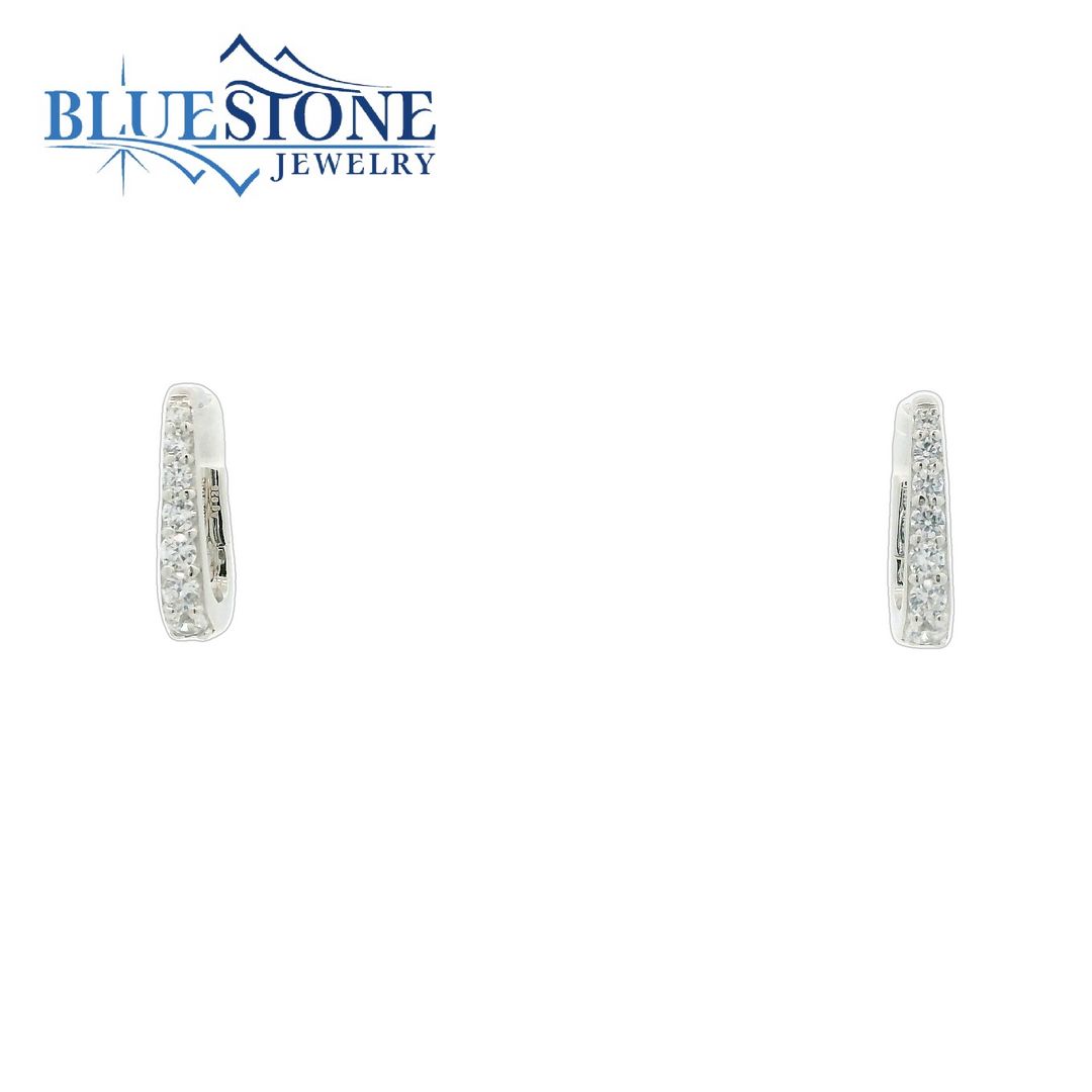 Sterling Silver Rhodium Plated Oval Box Huggie Hoop Earrings with 7 encrusted Cubic Zirconias. Measure 1/4 Inch.