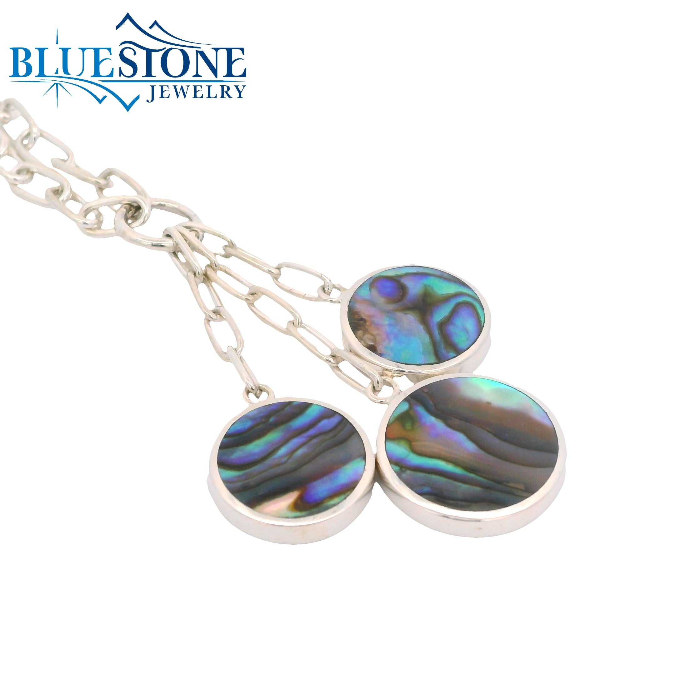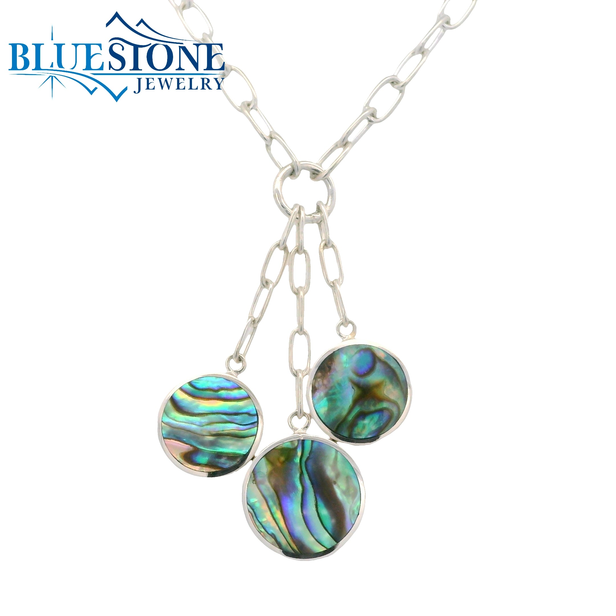Sterling Silver and Rhodium Plated 4.1mm Paperclip Chain with Three Drop Down Reversible Natural Abalone Shell Pedants.Chain Includes Two Additional Abalone Shells at Clasp.Necklace Measures 20 Inches Long, Can Be Worn at Shorter Lengths.