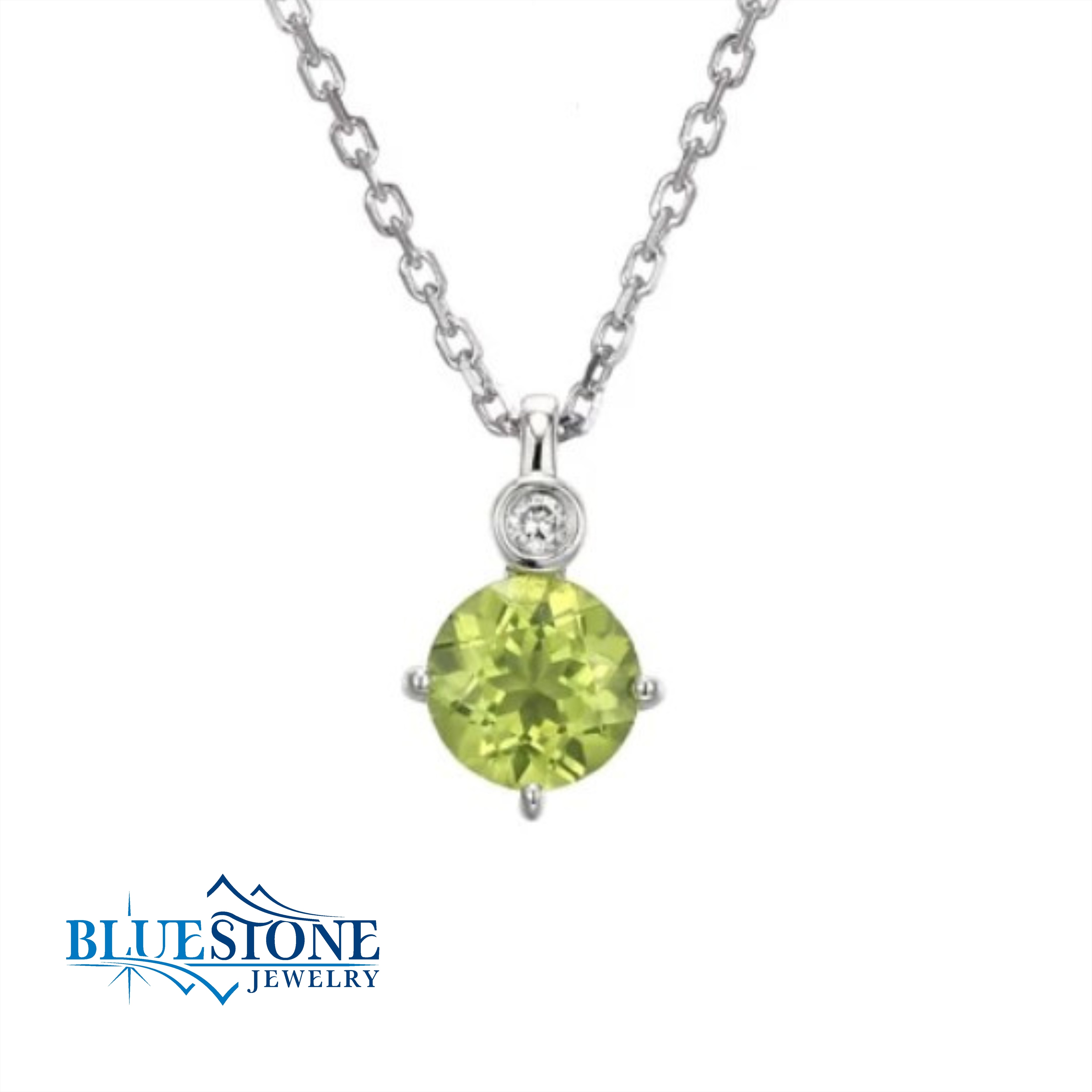 Silver Peridot & Diamond Necklace- August Birthstone