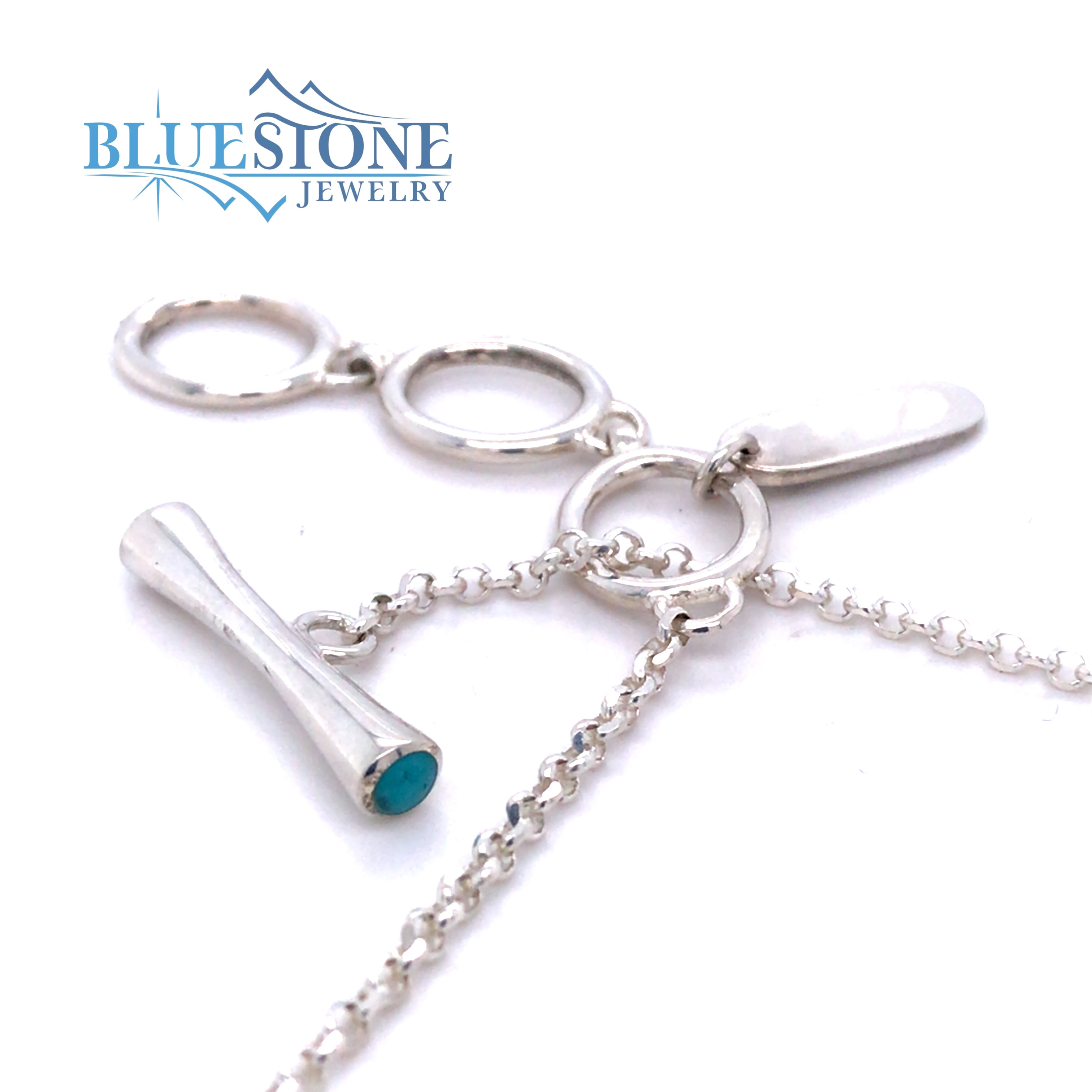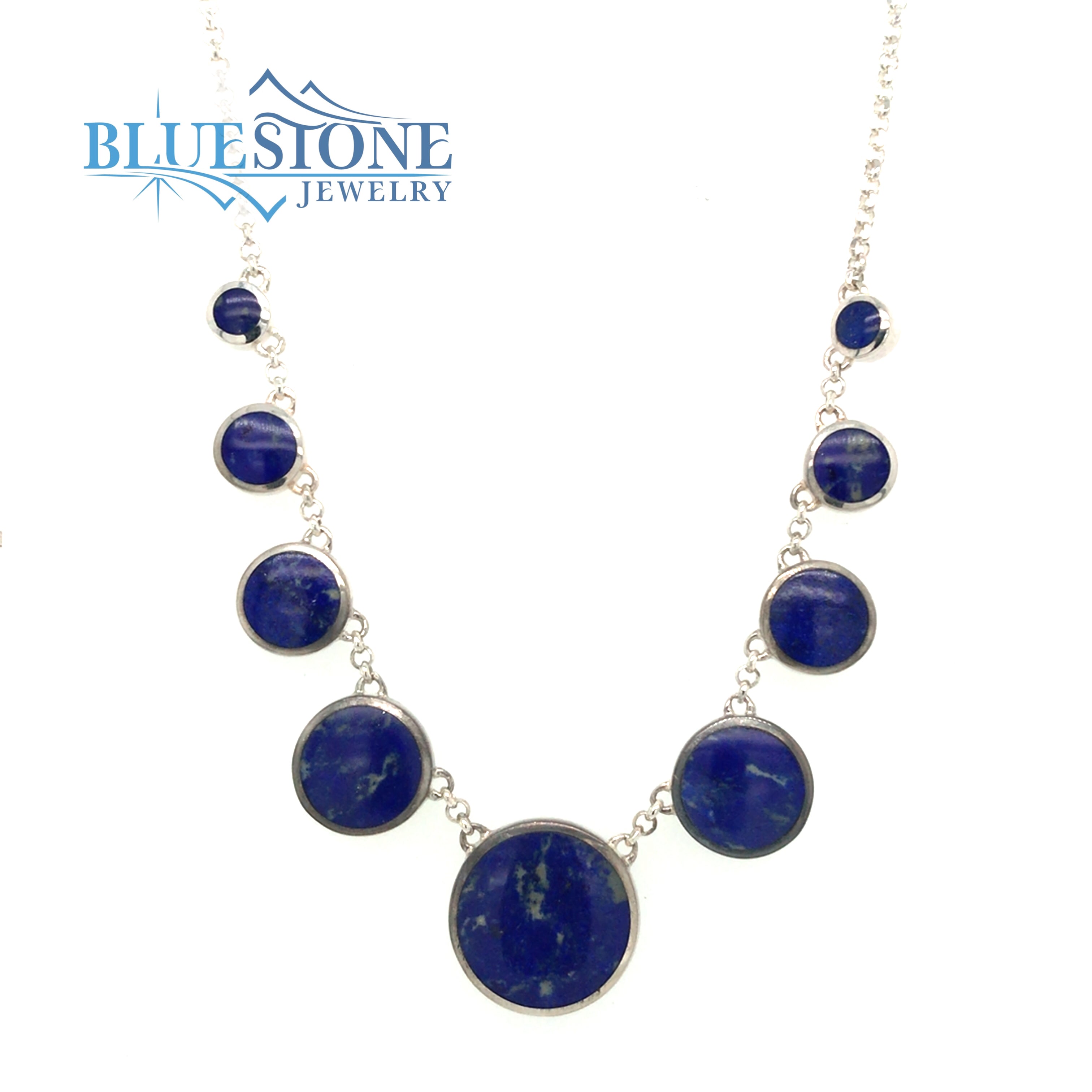 Sterling Silver with Rhodium Plating Reversible Necklace with Nine Round Natural Lapis Lazuli, Nine Round Natural Turquoises and Two Round Turquoises in Toggle Clasp. Can be worn between 16" and 17.5".