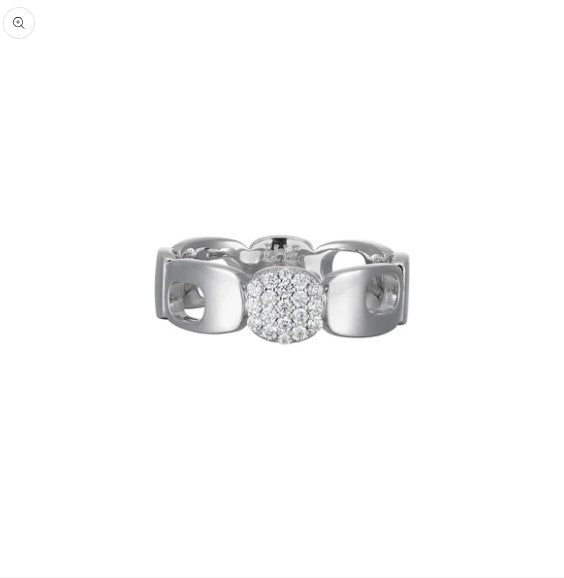 Sterling Silver Rhodium Plated Band Ring With Cut Outs And Cubic Zirconia Gemstones.Includes One Hidden Round Created Ruby Gemstone Which Represents Inner Beauty, Inner Peace & Inner Strength.Size 7.