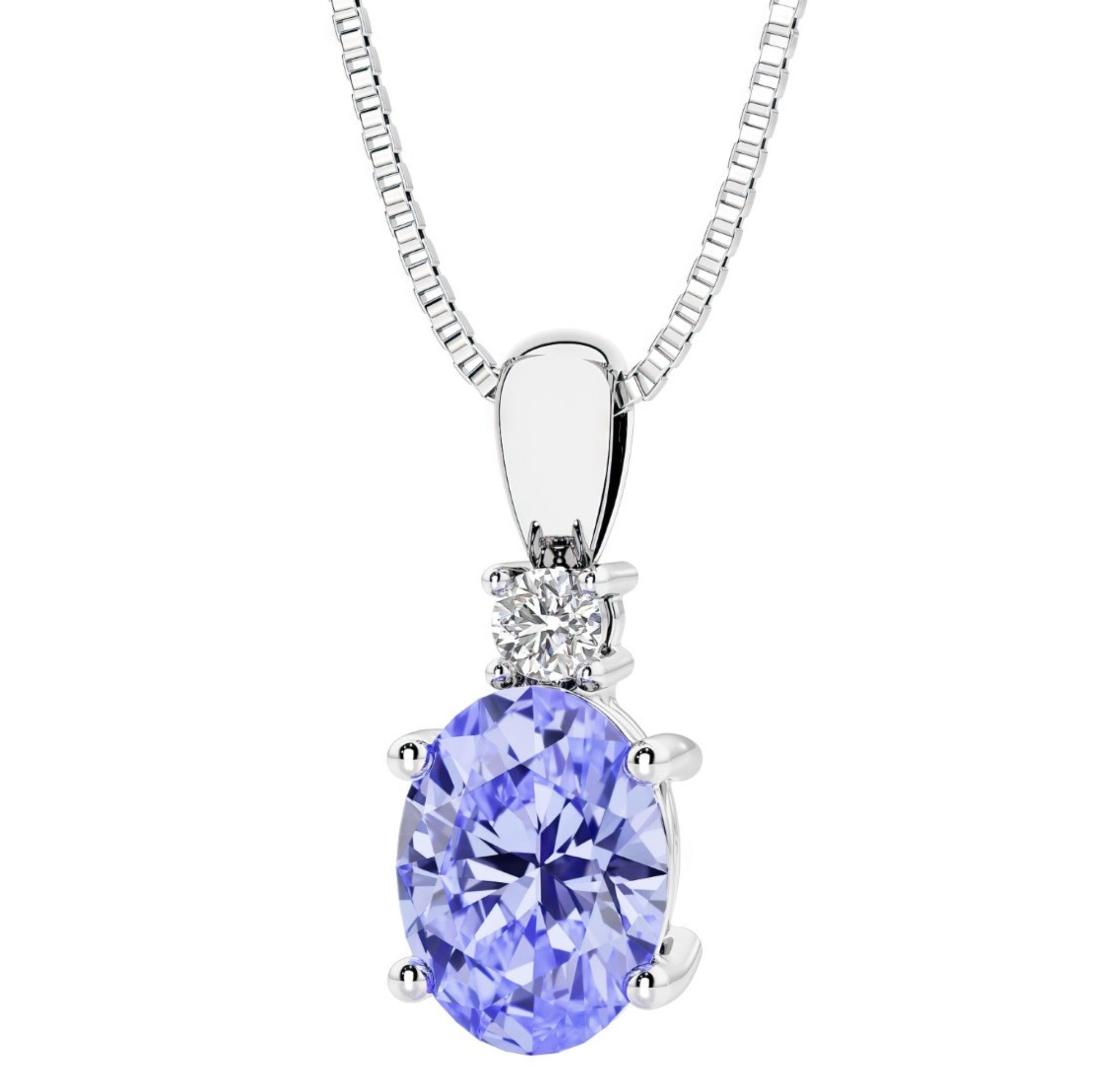 Sterling Silver Rhodium Plated Pendant with One 8mm x 6mm Oval Cut Simulated Tanzanite and One 2.4mm Round Cut Lab Created Diamond. Pendant Measures 5/8" Long. Comes on a Sterling Silver Rhodium Plated 20 Inch Rolo Chain. Can be worn between 17" and 20".
