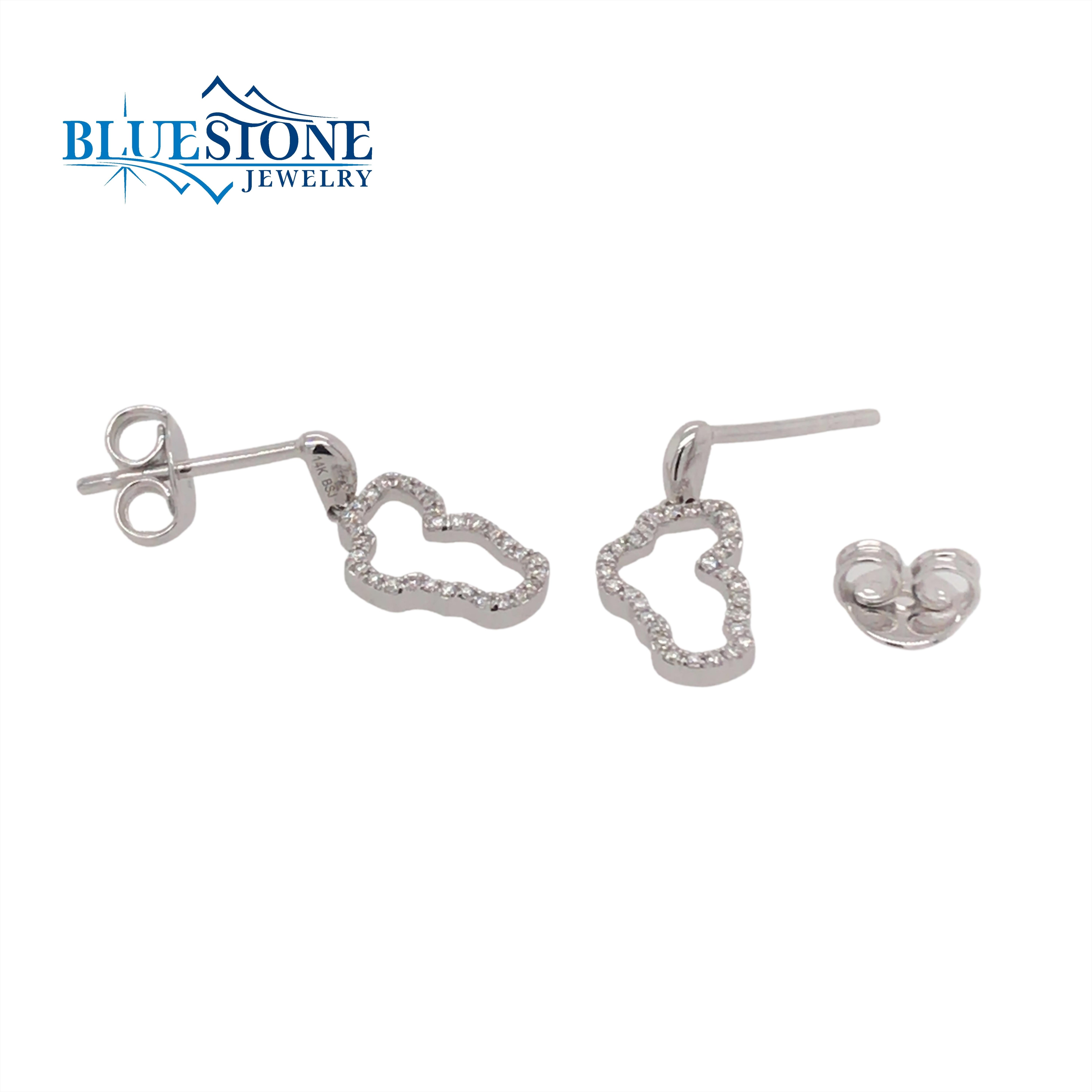 Small 14 Karat White Gold Lake Tahoe Outline Diamond Earrings