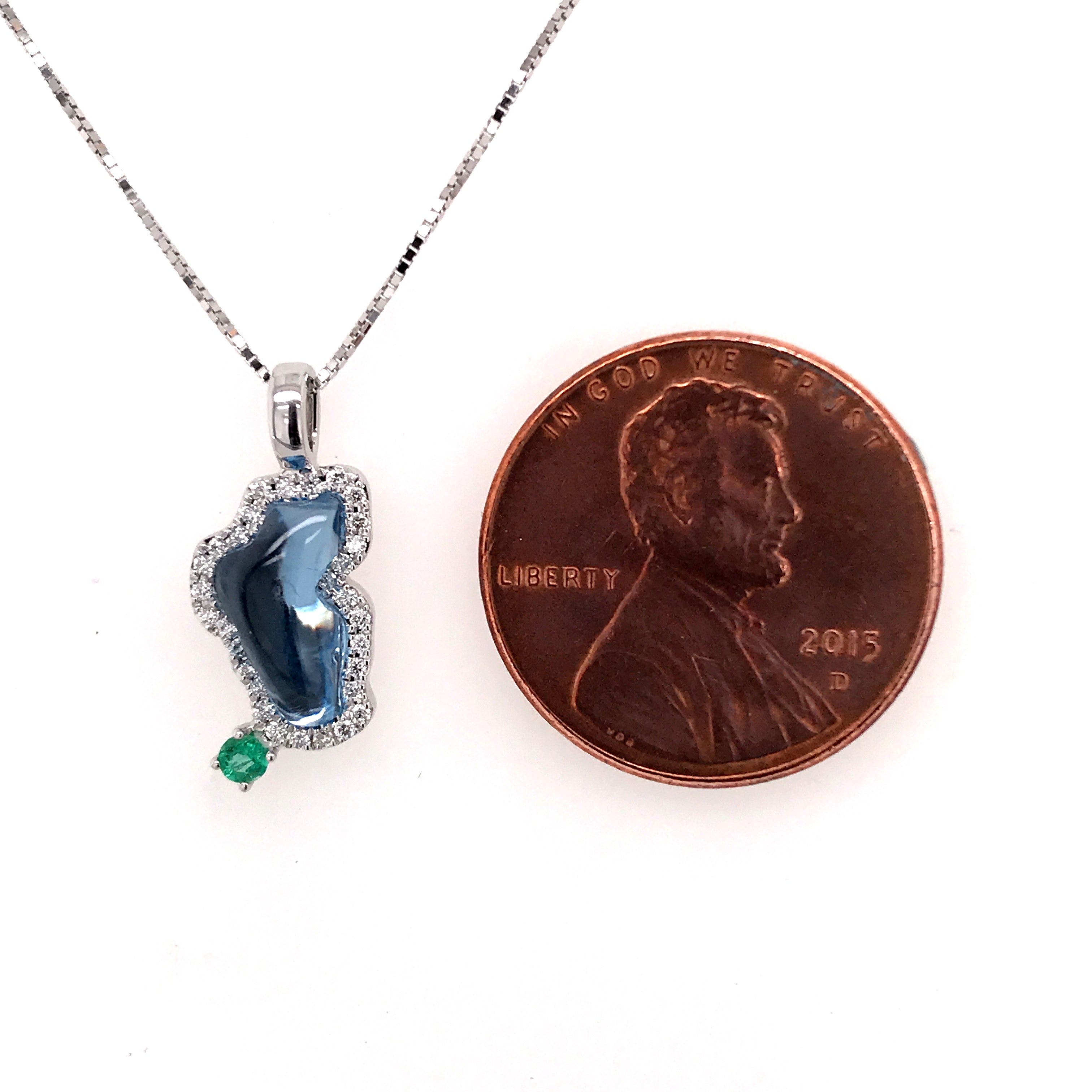 Small 14kt White Gold Lake Tahoe Pendant with Topaz, Diamonds and Emerald