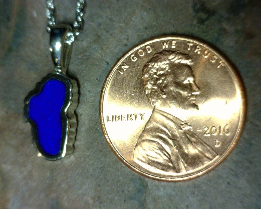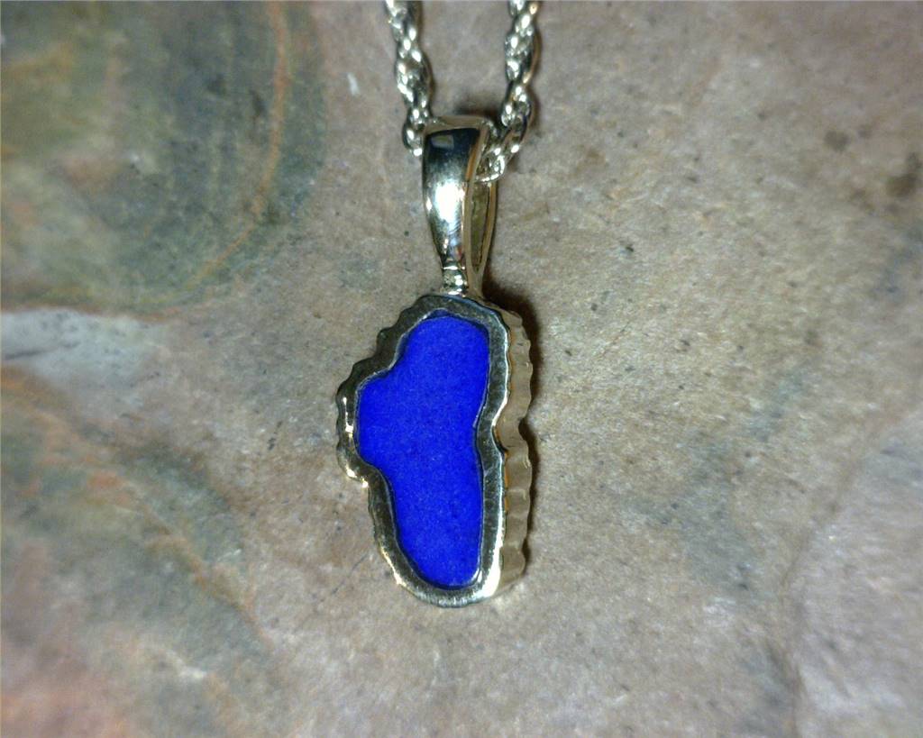 Small 14 Karat White Gold Pendant with a Lake Tahoe Shaped Lapis