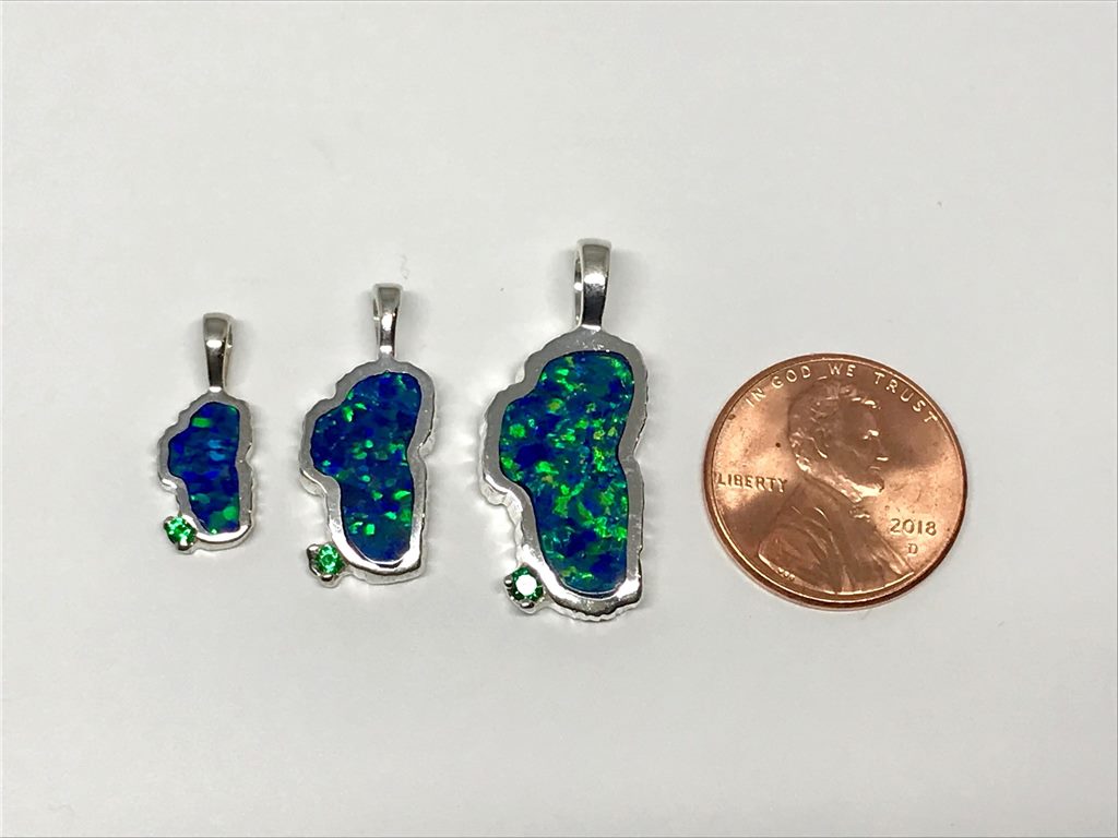 Small 14K White Gold Lake Tahoe Pendant with LAB Grown Opal & Emerald