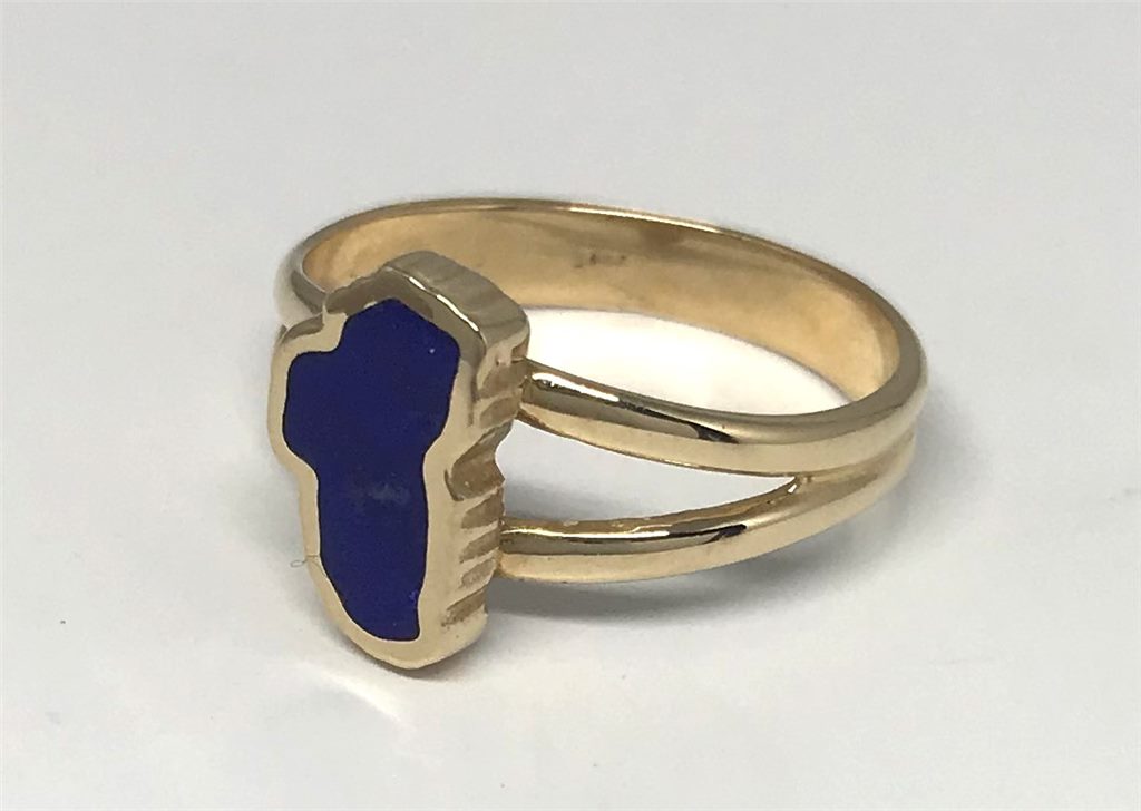 Small 14 Karat Yellow Gold Lake Tahoe Lapis Ring. Ring Size 6