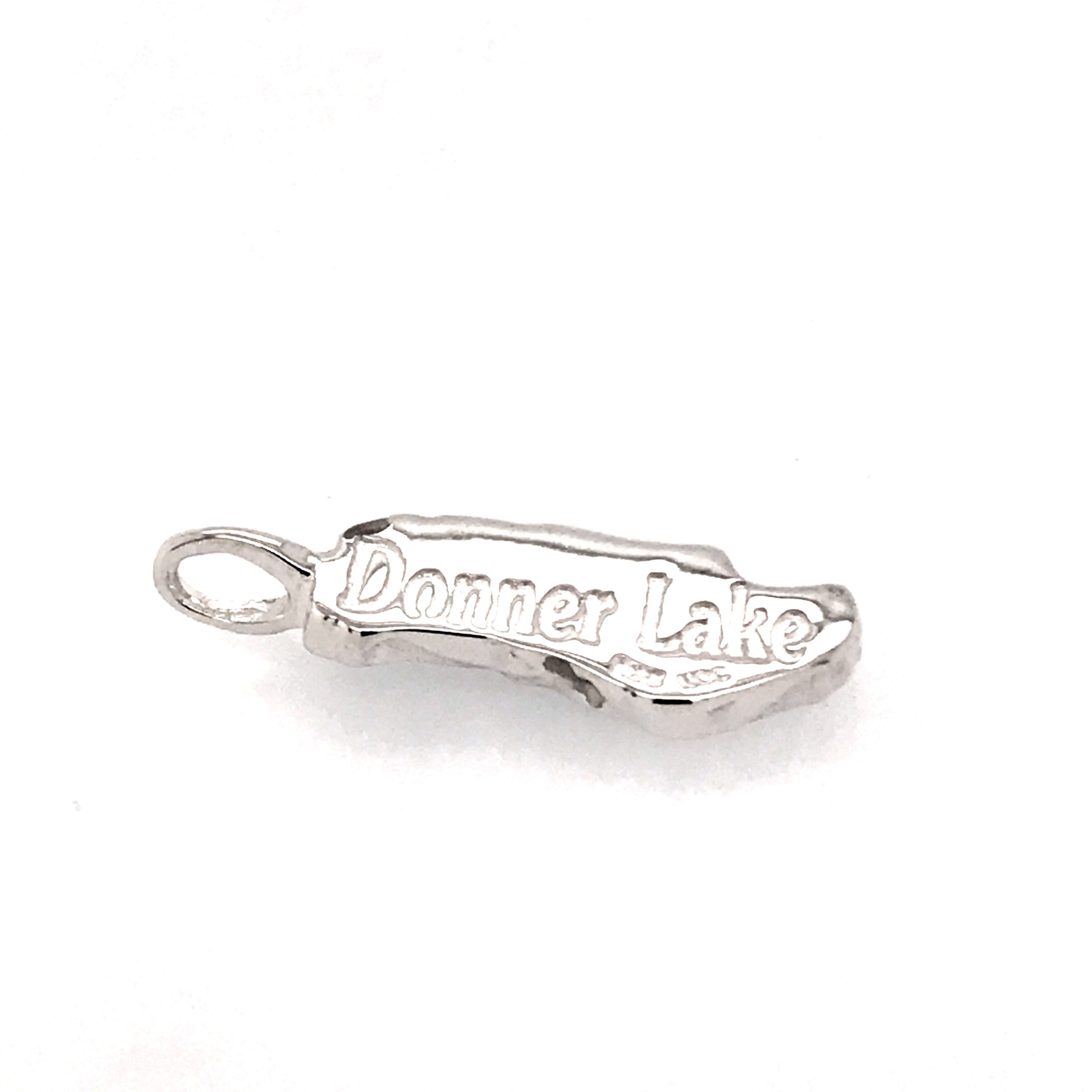 Small Sterling Silver Donner Lake Pendant with Inlaid Turquoise. Measures 1/4th of an inch wide by 3/4ths of an inch tall.Comes on an 18" metal alloy DISPLAY chain.Natural stone's appearance may vary from picture.